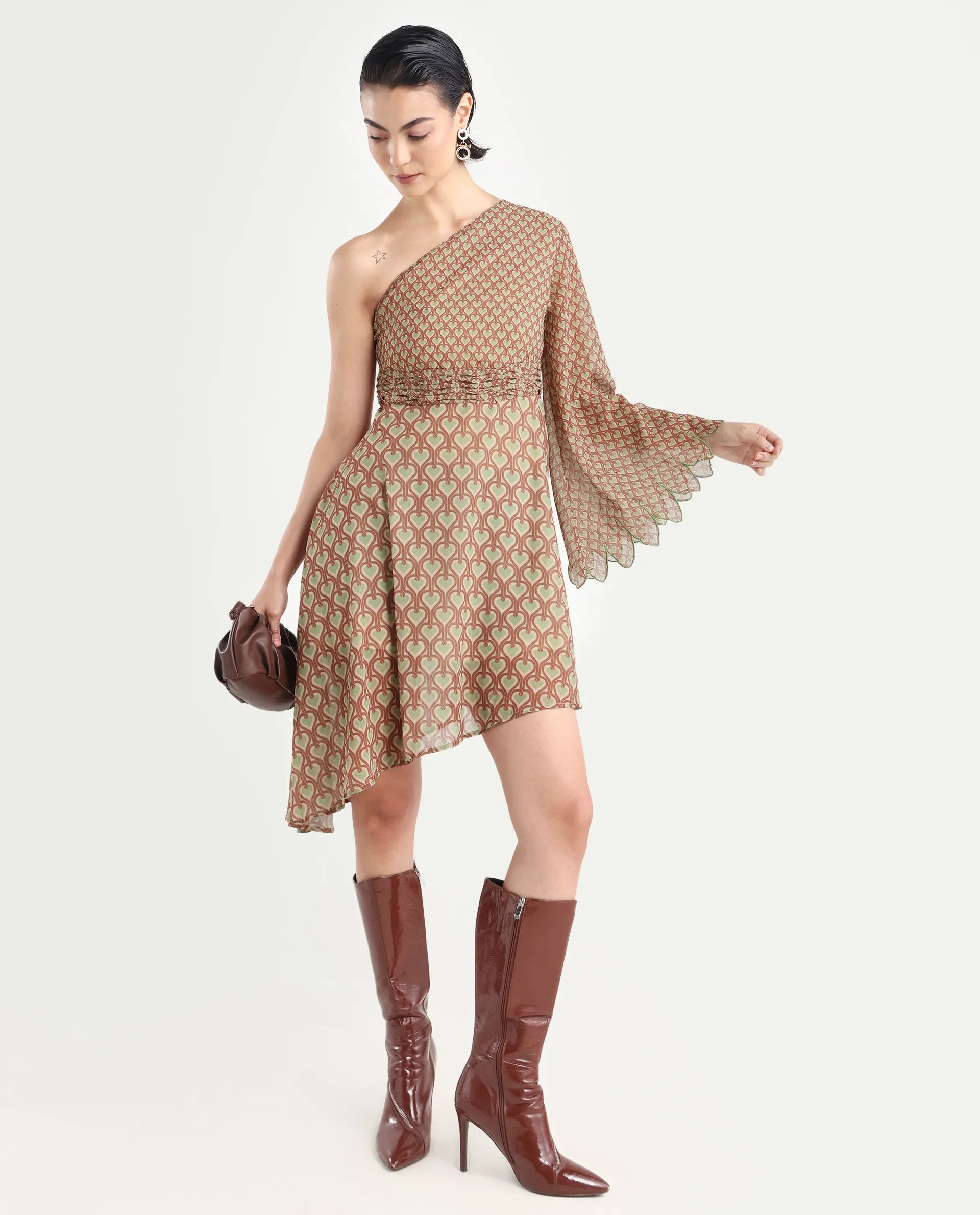 GEOMETRIC PRINT KNEE LENGTH DRESS