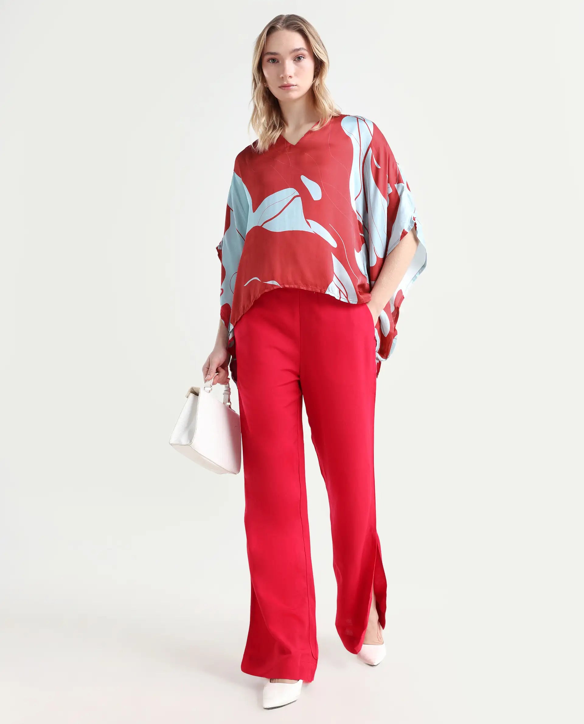Rareism Women's Alyse Maroon Modal V-Neck Abstract Print Regular Fit Top