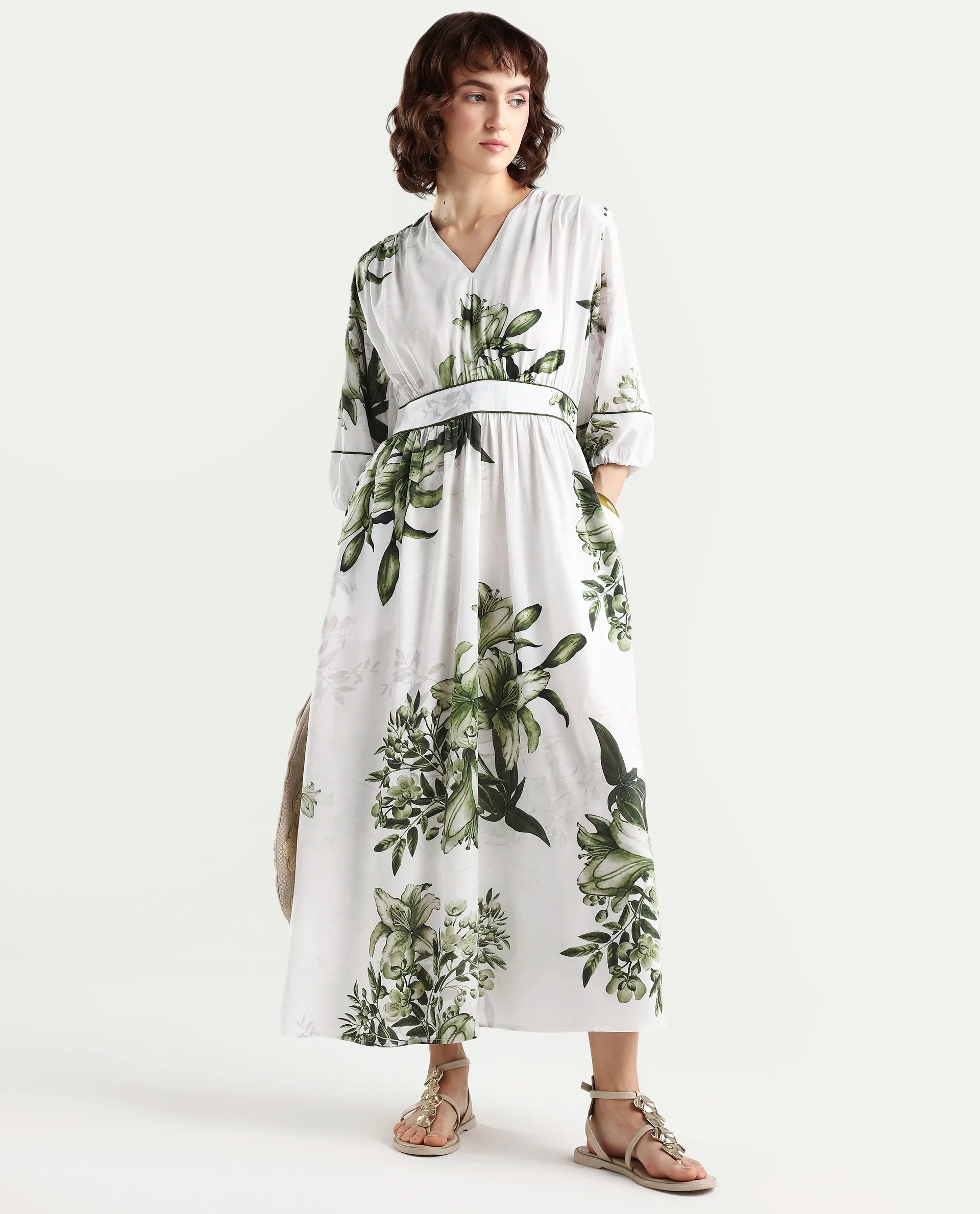 Elevate your everyday wardrobe with the Rareism Arsyn dress, a sophisticated blend of comfort and style. Crafted from premium viscose, this off-white piece features a flattering fit-and-flare silhouette that gracefully skims the body. The delicate floral print adds visual interest, while the V-neckline and half sleeves offer a refined, versatile look perfect for casual outings or weekend gatherings. The breathable fabric ensures all-day comfort, making this dress an essential addition to any discerning woman's collection.