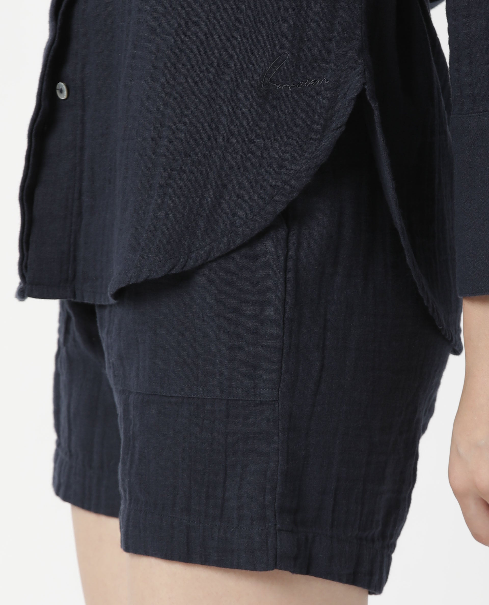 Rareism Women Leno Navy Cotton Fabric Regular Fit Solid High Rise Shorts