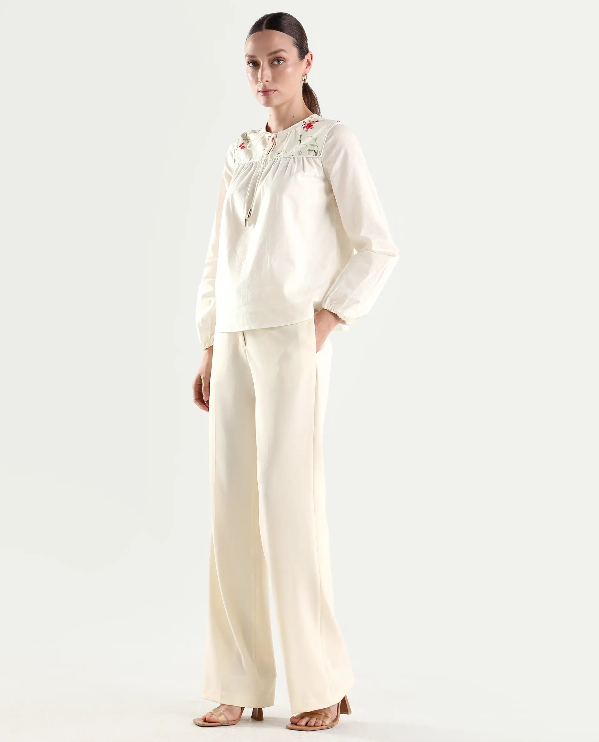 Rareism Women's Srait-1 Off White Viscose Fabric Straight Plain Trouser