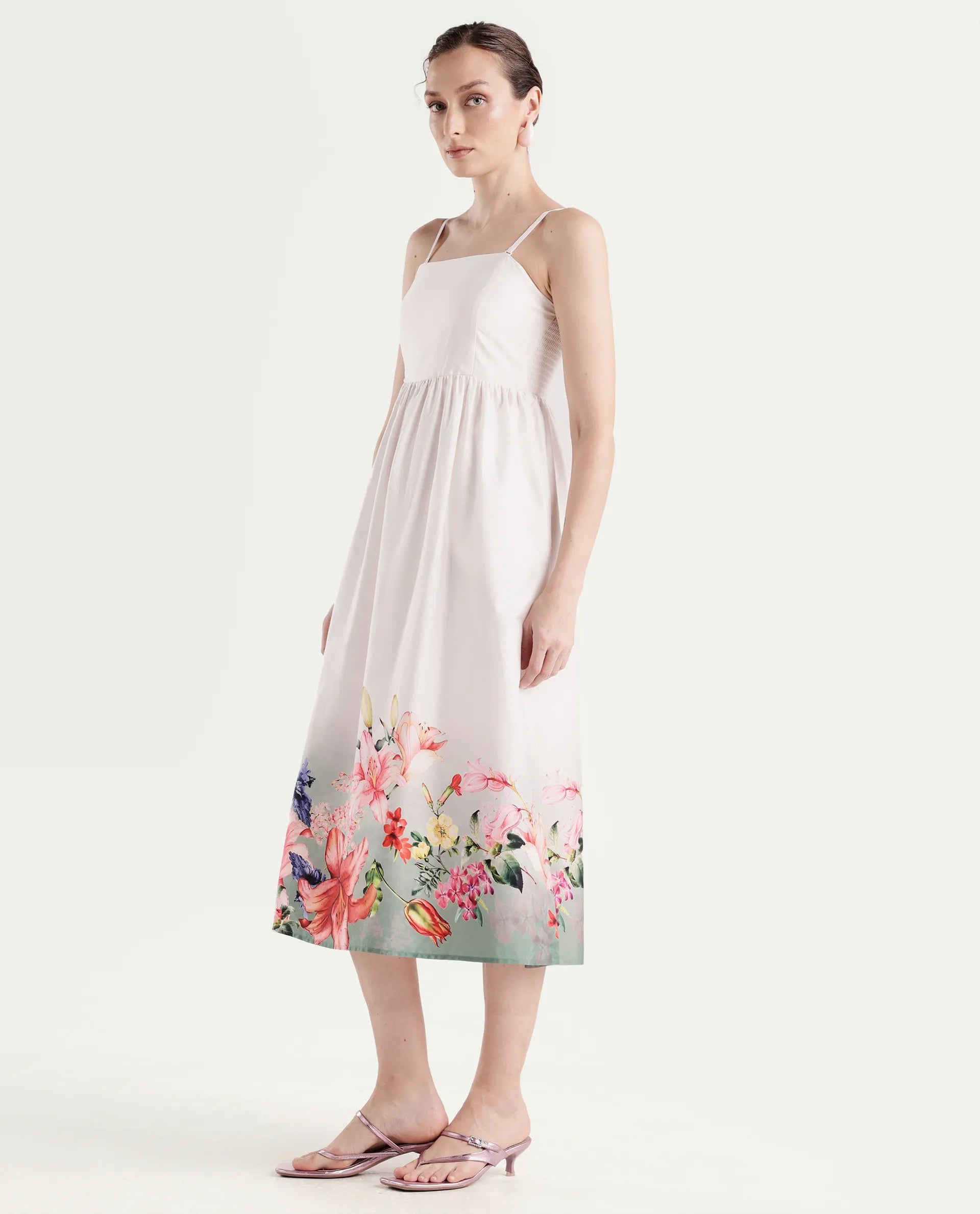 FLORAL PLACEMENT PRINT MIDI DRESS