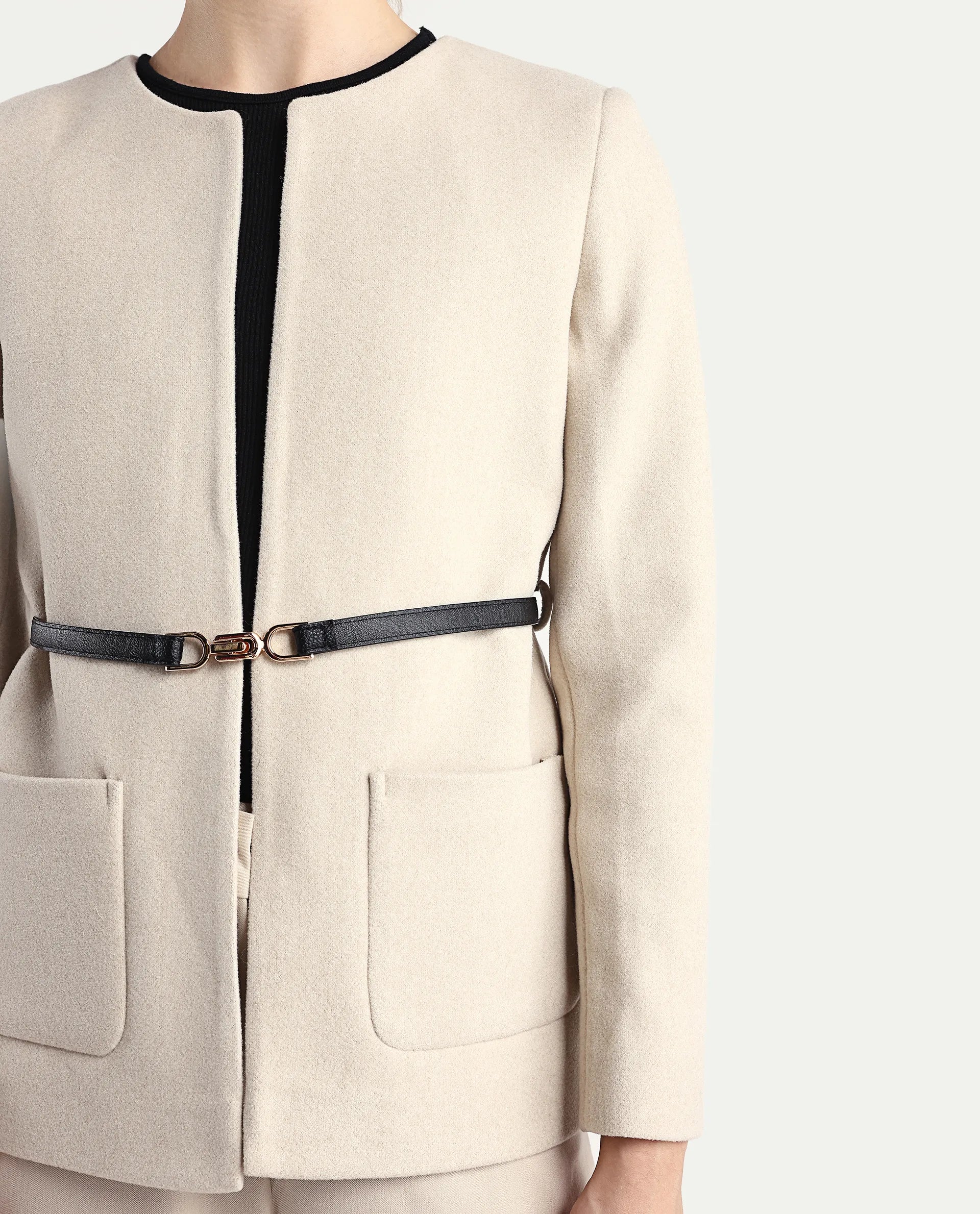 SOLID JACKET WITH BELT CLOSURE