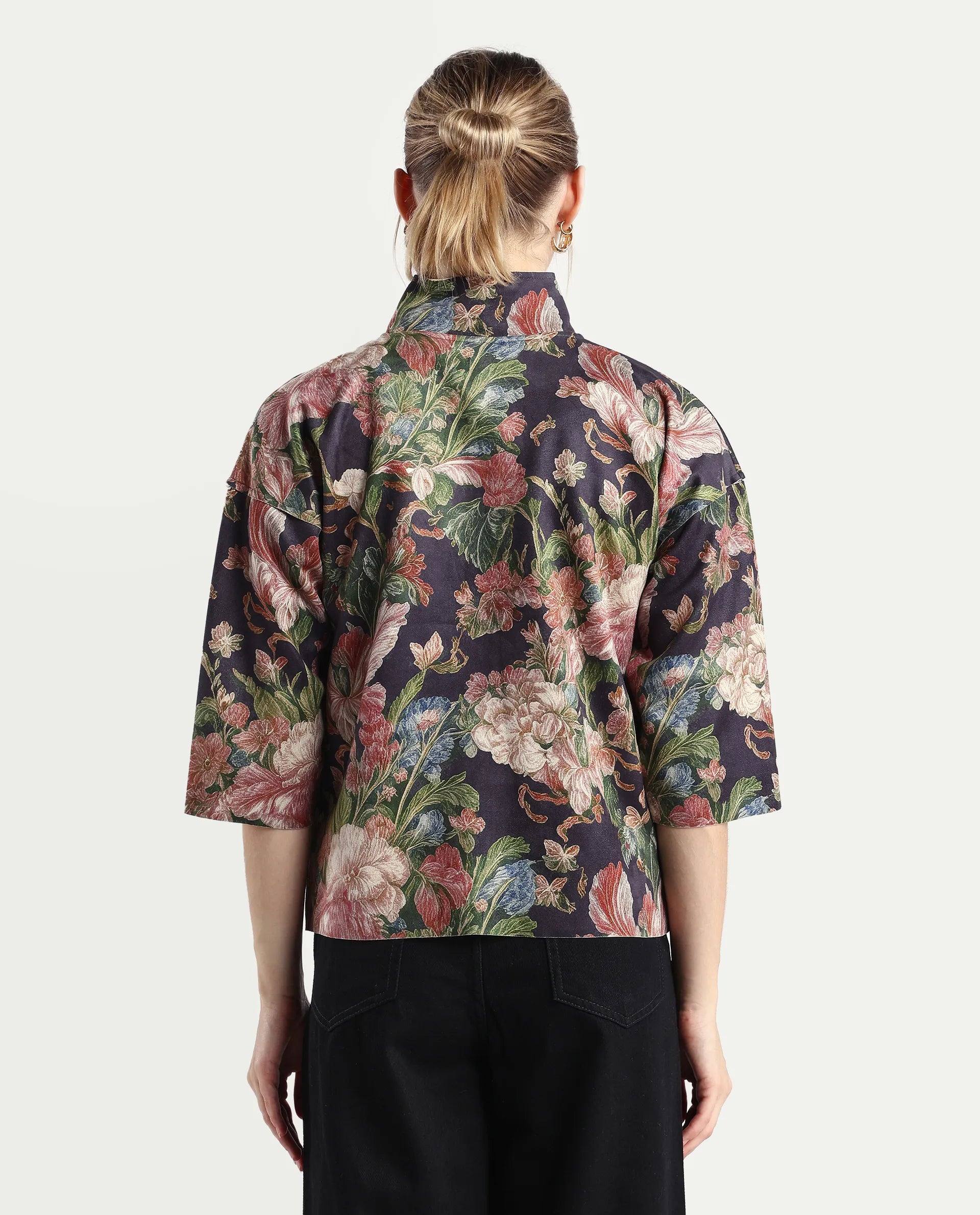 FLORAL PRINT BOXY SUEDE JACKET