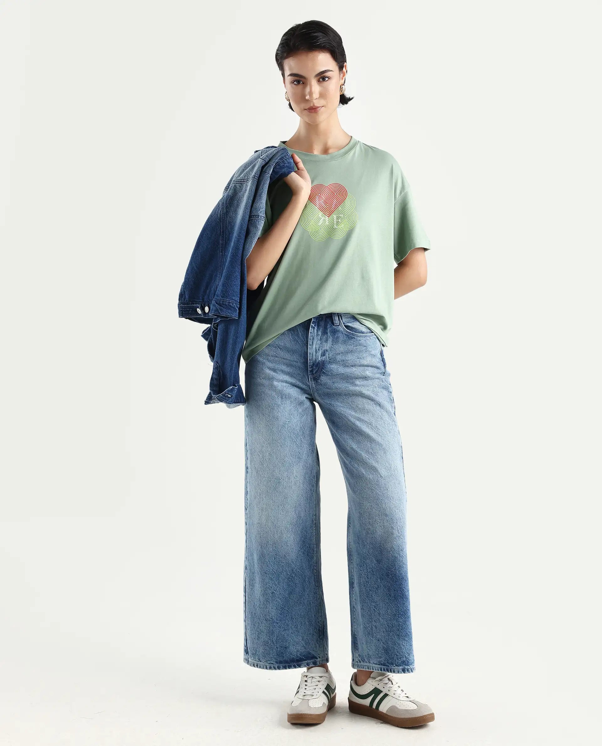 Crafted from soft knit fabric, the Rareism Women's Clea-R Dusky Green T-Shirt features a classic crew neck and a clean, plain design. Its dusky green shade ensures a versatile look that pairs effortlessly with various outfits, while the breathable material provides comfort for daily wear. Ideal for layering or wearing alone, this T-shirt blends simplicity with refined style for an understated yet polished appearance.