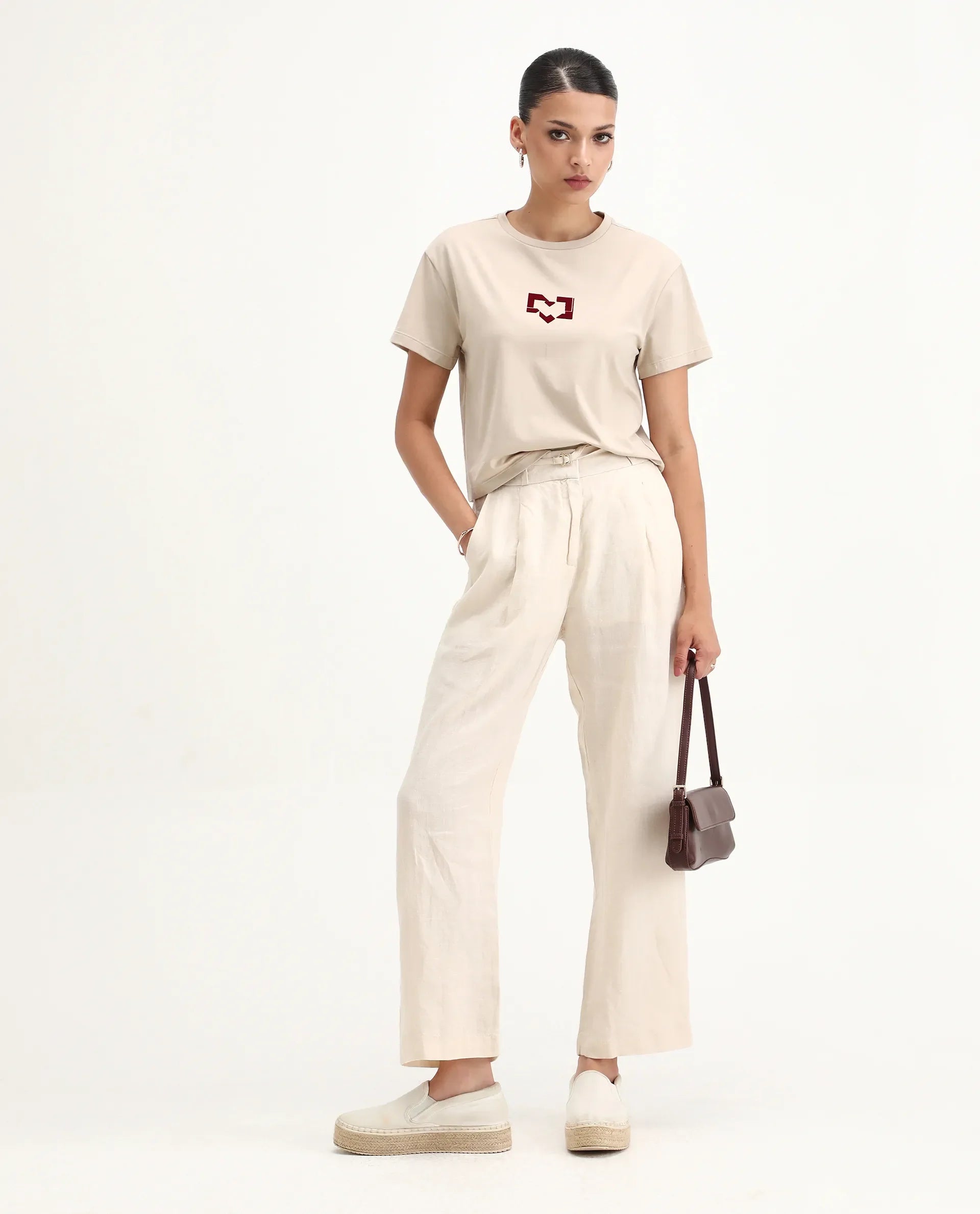 This womens t-shirt from RAREISM carries a contemporary and minimal charm. Its neat styling keeps the outfit looking fresh and composed. A reliable pick for someone who prefers a soft, modern aesthetic.