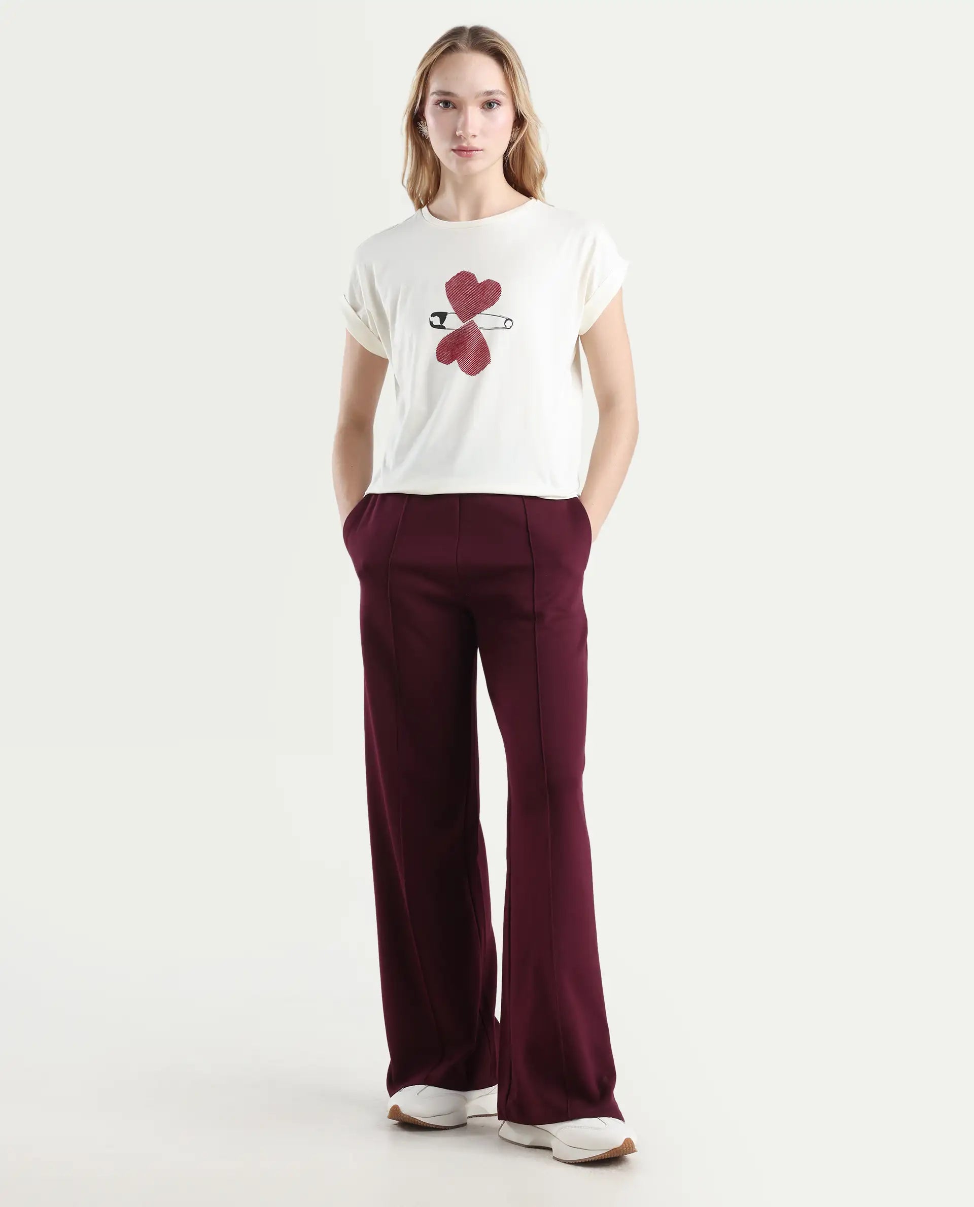 This womens t-shirt from RAREISM carries a contemporary and minimal charm. Its neat styling keeps the outfit looking fresh and composed. A reliable pick for someone who prefers a soft, modern aesthetic.
