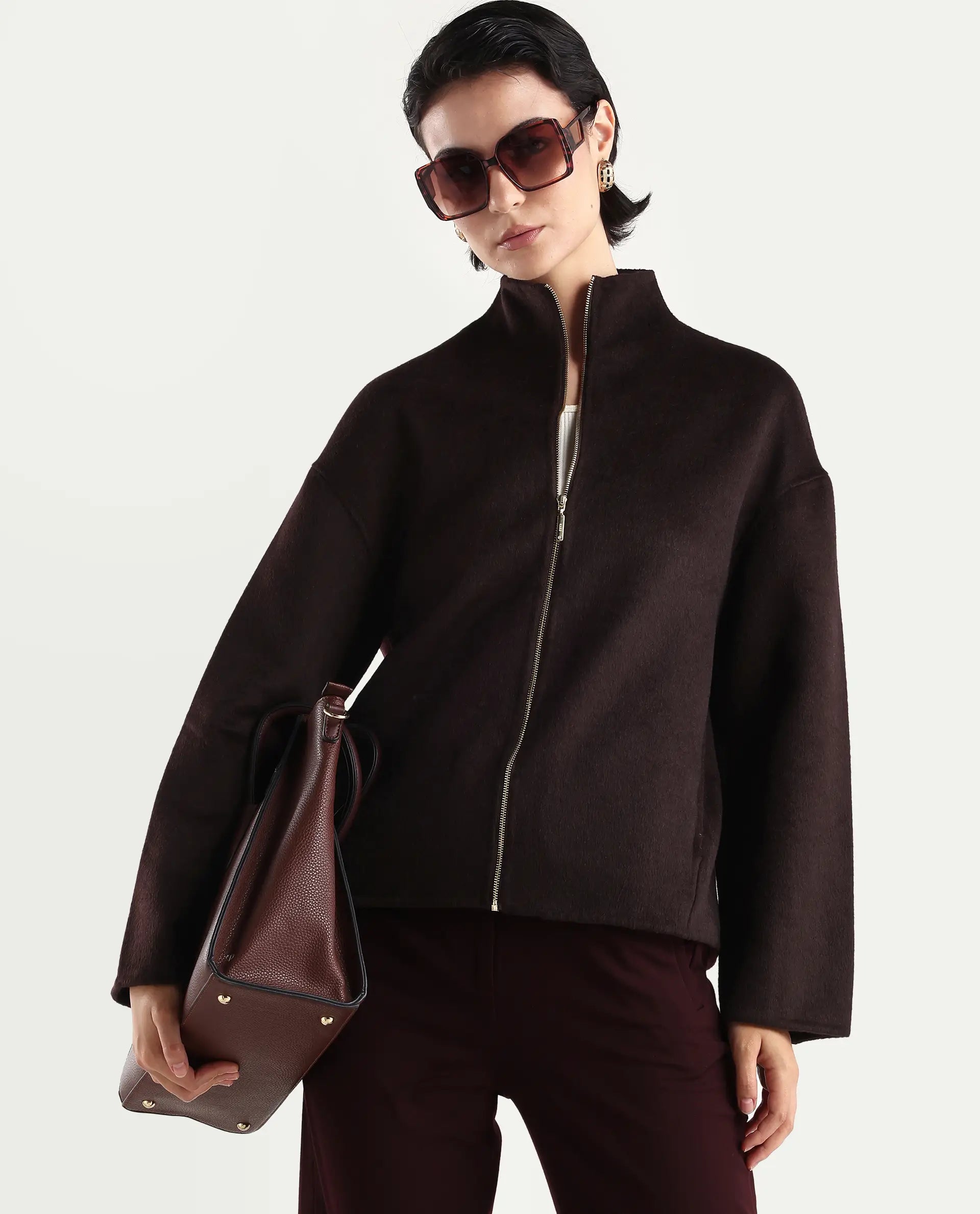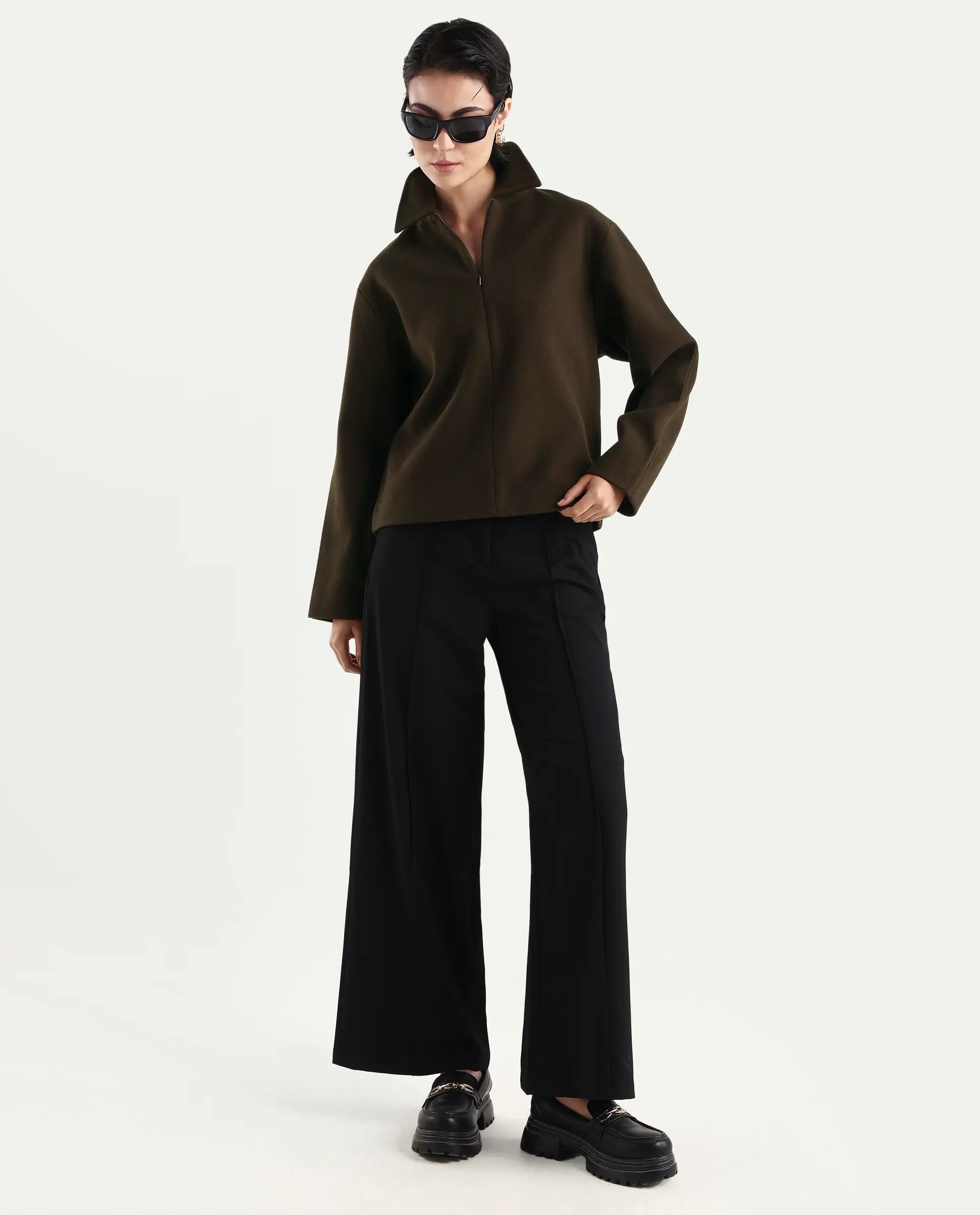 Rareism Women's Nacoz Olive Polyester Blend Spread Collar Regular Fit Jacket