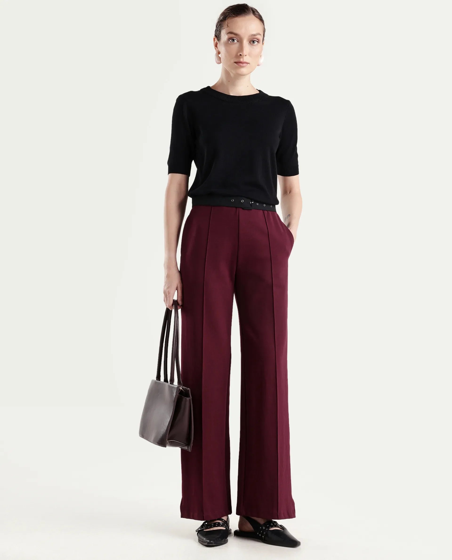 Rareism Women's Sohrdo Black Nylon Blend Half Sleeve Crew Neck Regular Fit Plain Top