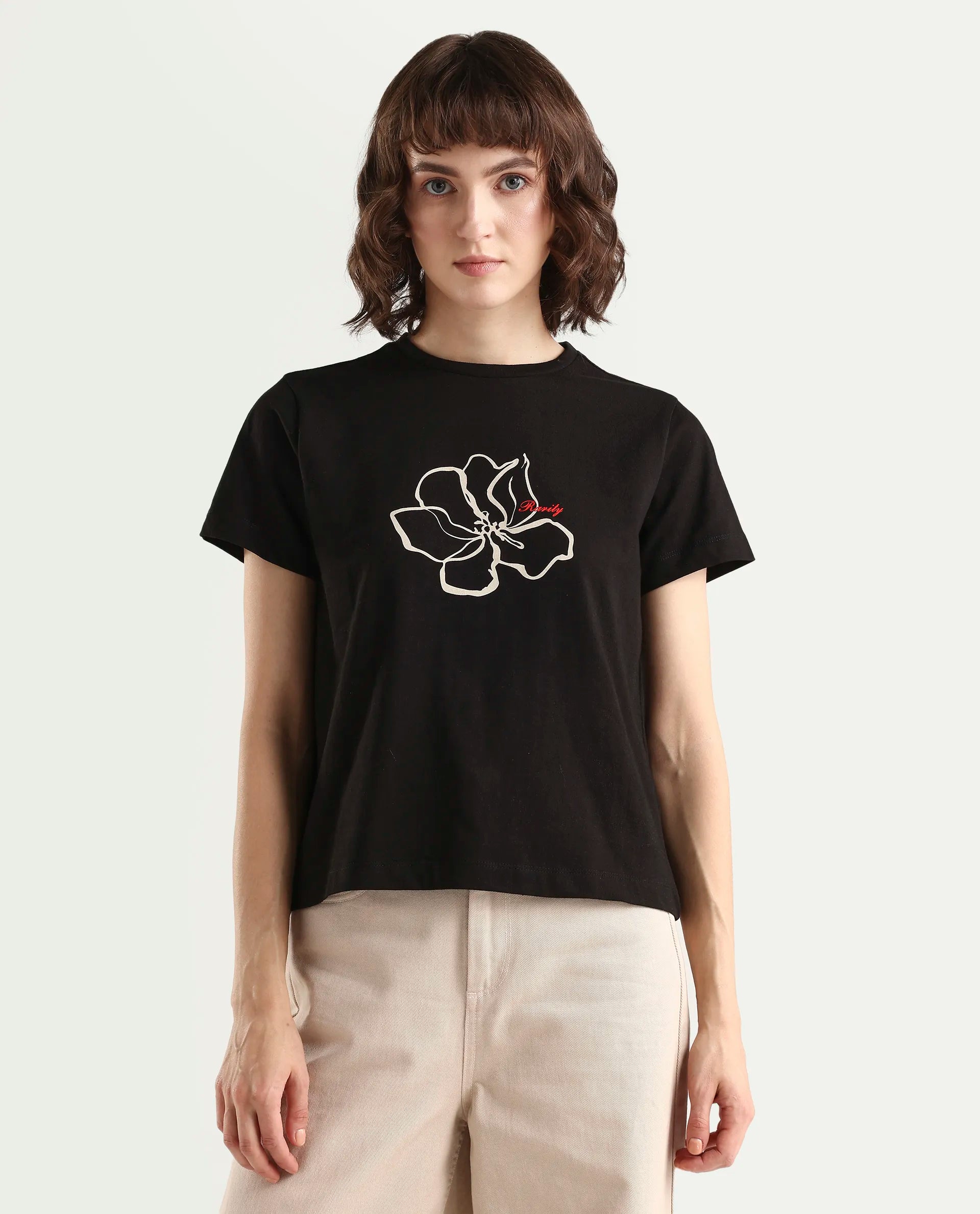Elevate your everyday wardrobe with this sophisticated cotton t-shirt from Rareism's Zrad collection. Crafted from premium cotton fabric, this piece combines comfort with contemporary style through its delicate floral print design. The half-sleeve cut and regular fit provide a flattering silhouette suitable for various occasions, from casual outings to relaxed office settings. The black base ensures versatility, pairing effortlessly with your existing pieces. Perfect for those who appreciate quality basics with artistic flair, this t-shirt delivers both durability and refined aesthetics.
