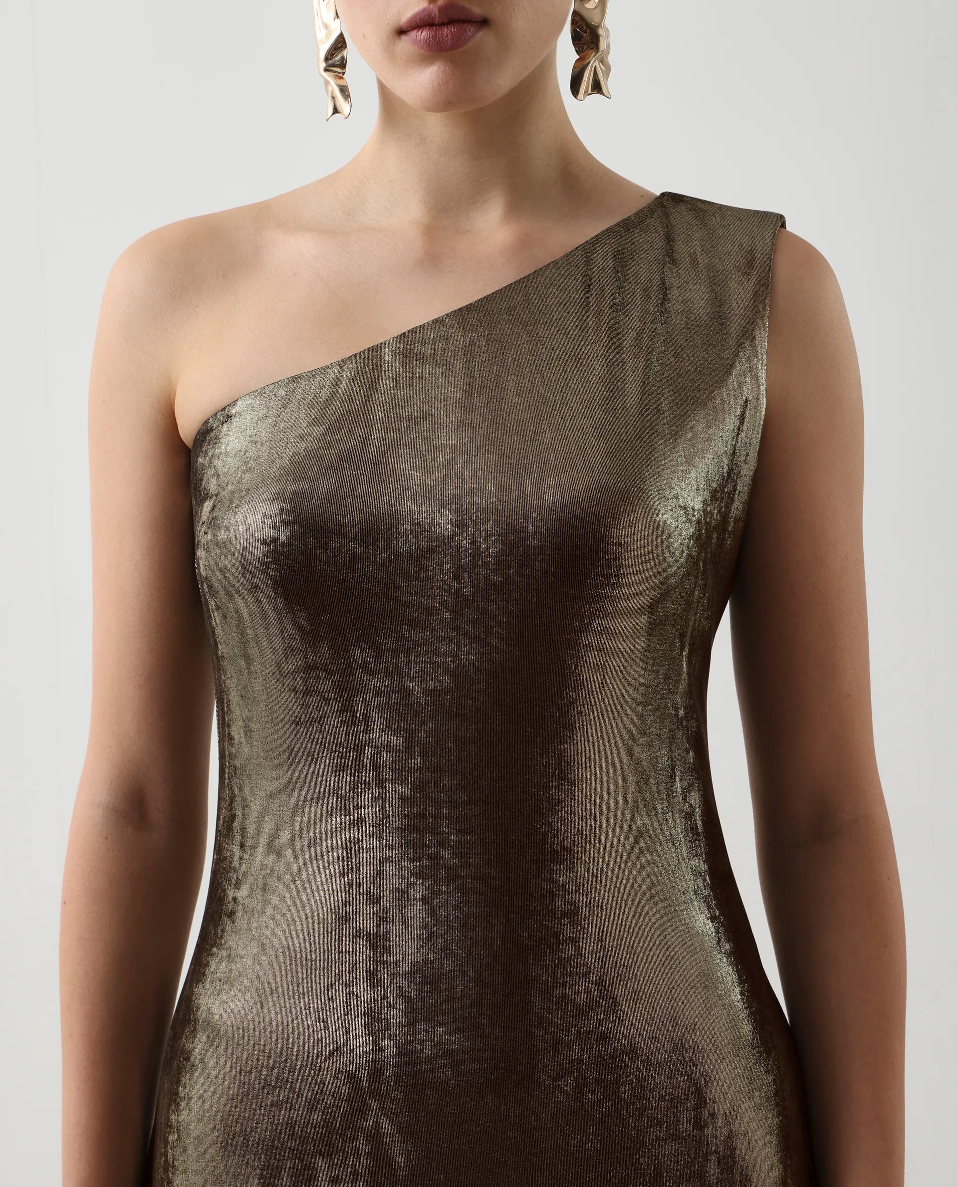 METALLIC ONE SHOULDER MIDI DRESS