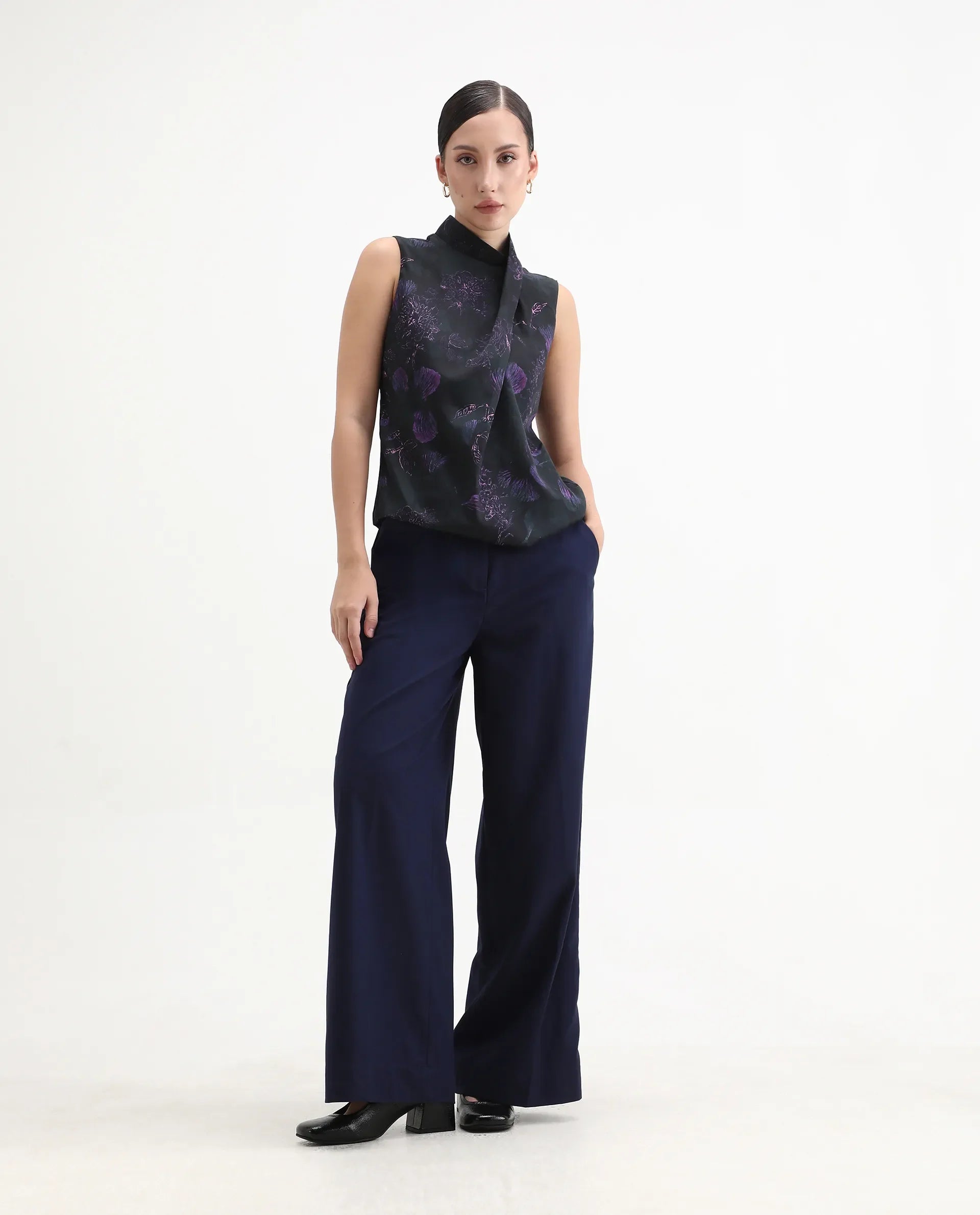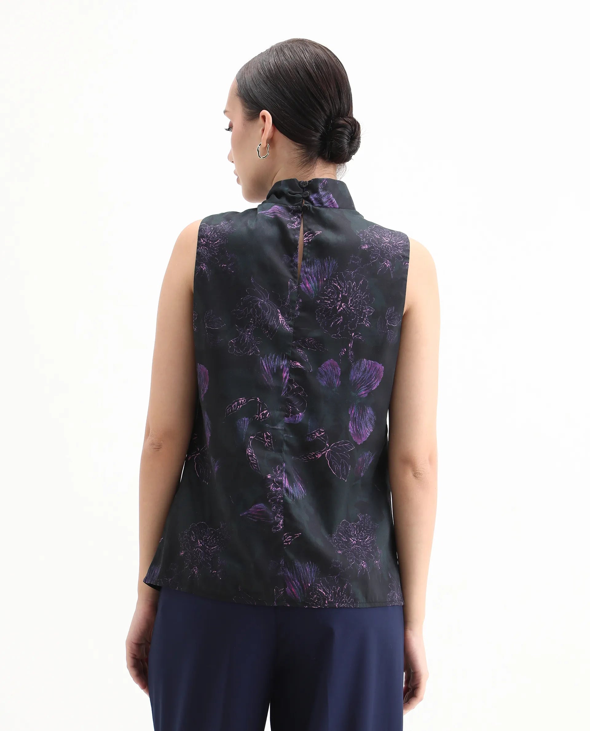Rareism Women's Nutro Black Cotton Blend Sleeveless Cowl Neck Regular Fit Top