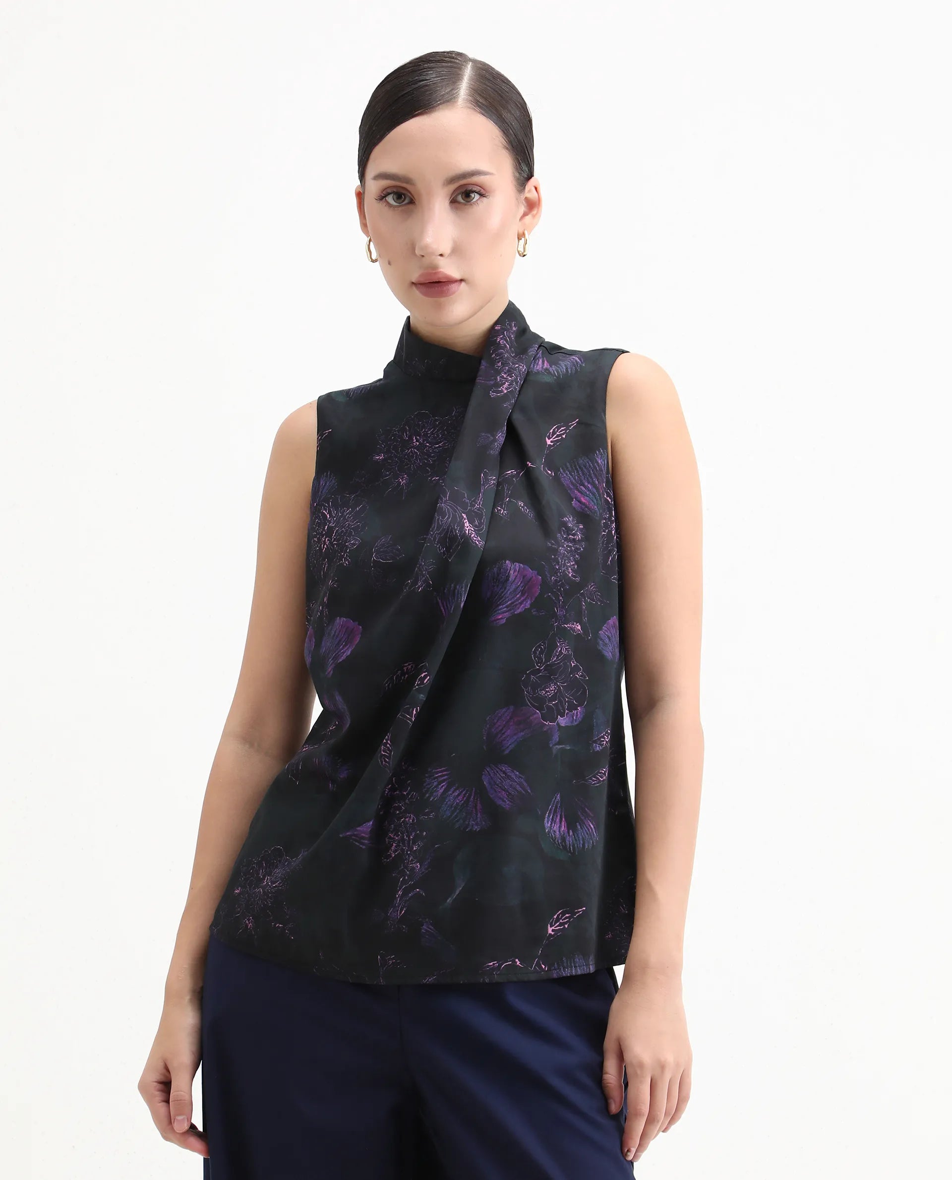 FLORAL PRINT COWL TOP