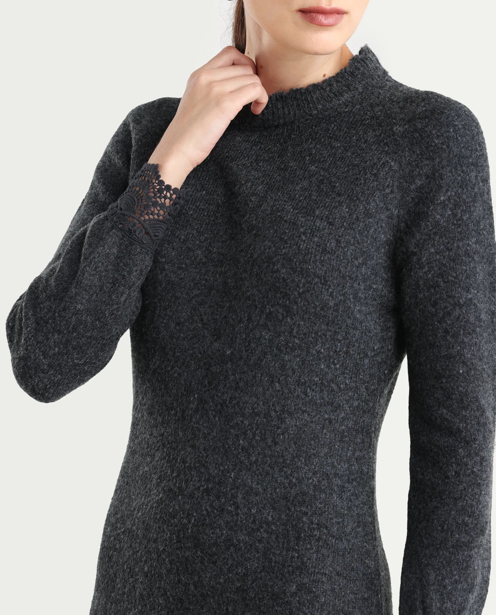 SOLID FLAT KNIT DRESS WITH LACE DETAIL