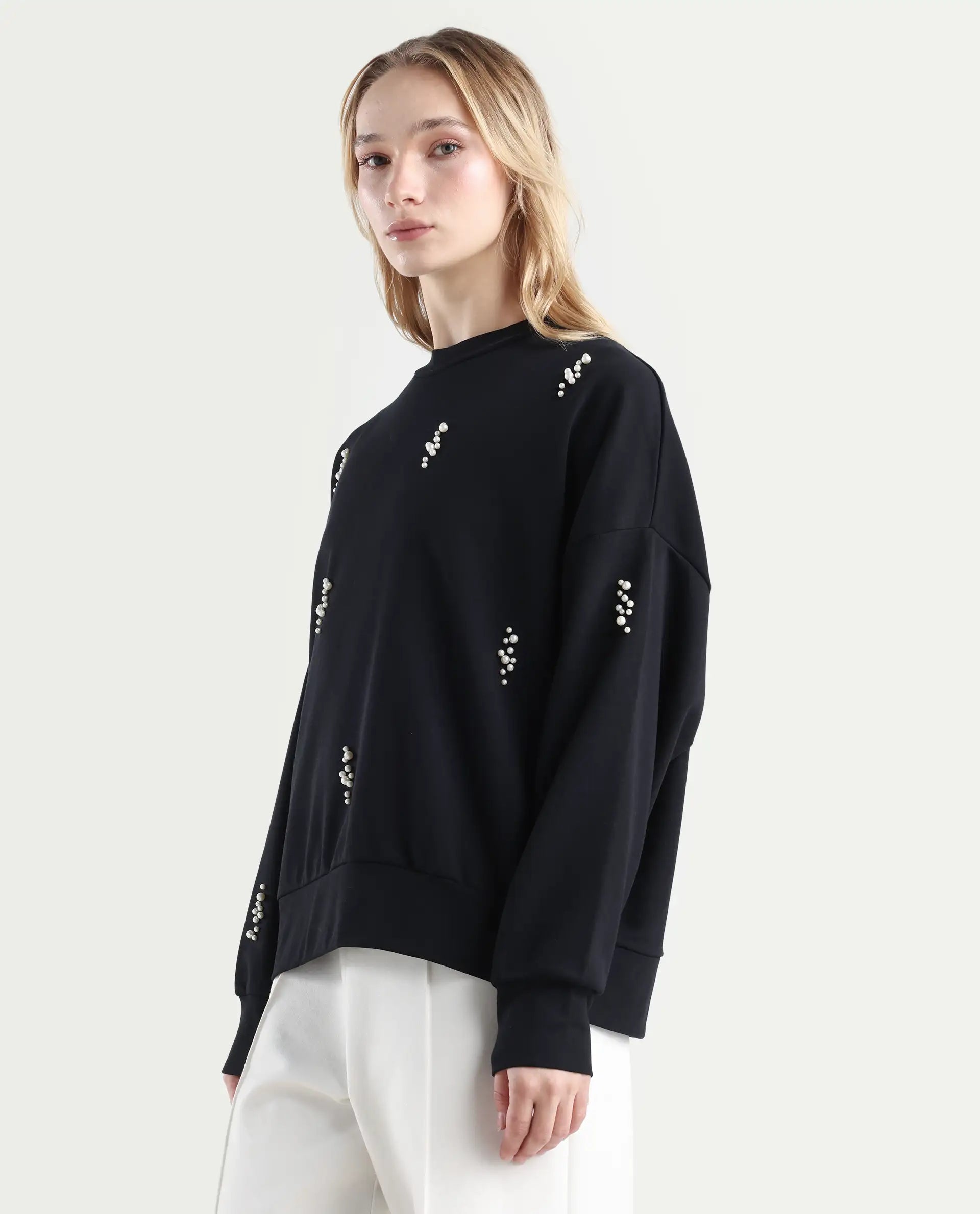 SOLID RELAXED SWEATSHIRT WITH PEARL DETAIL