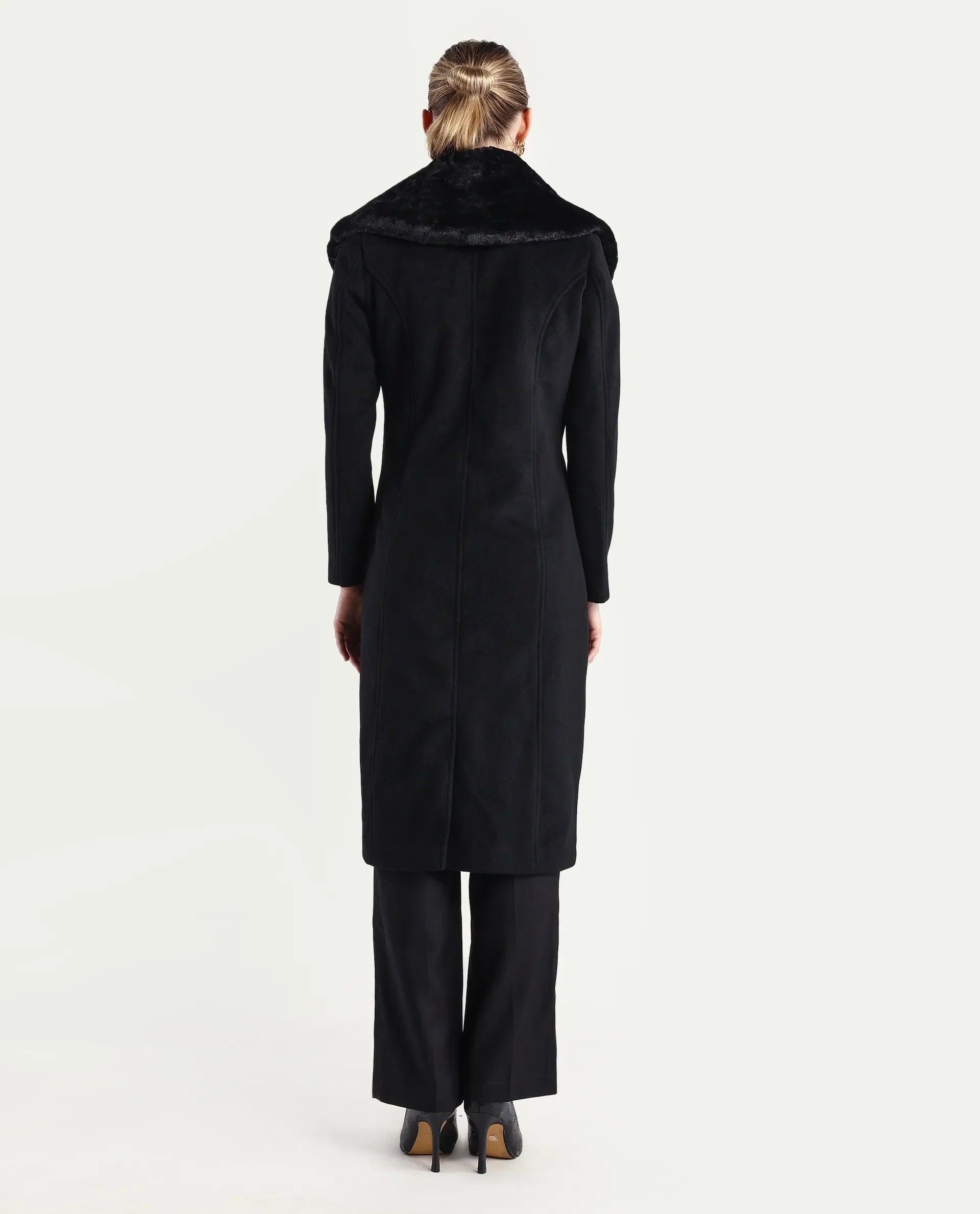 SOLID LONG COAT WITH FUR LAPEL