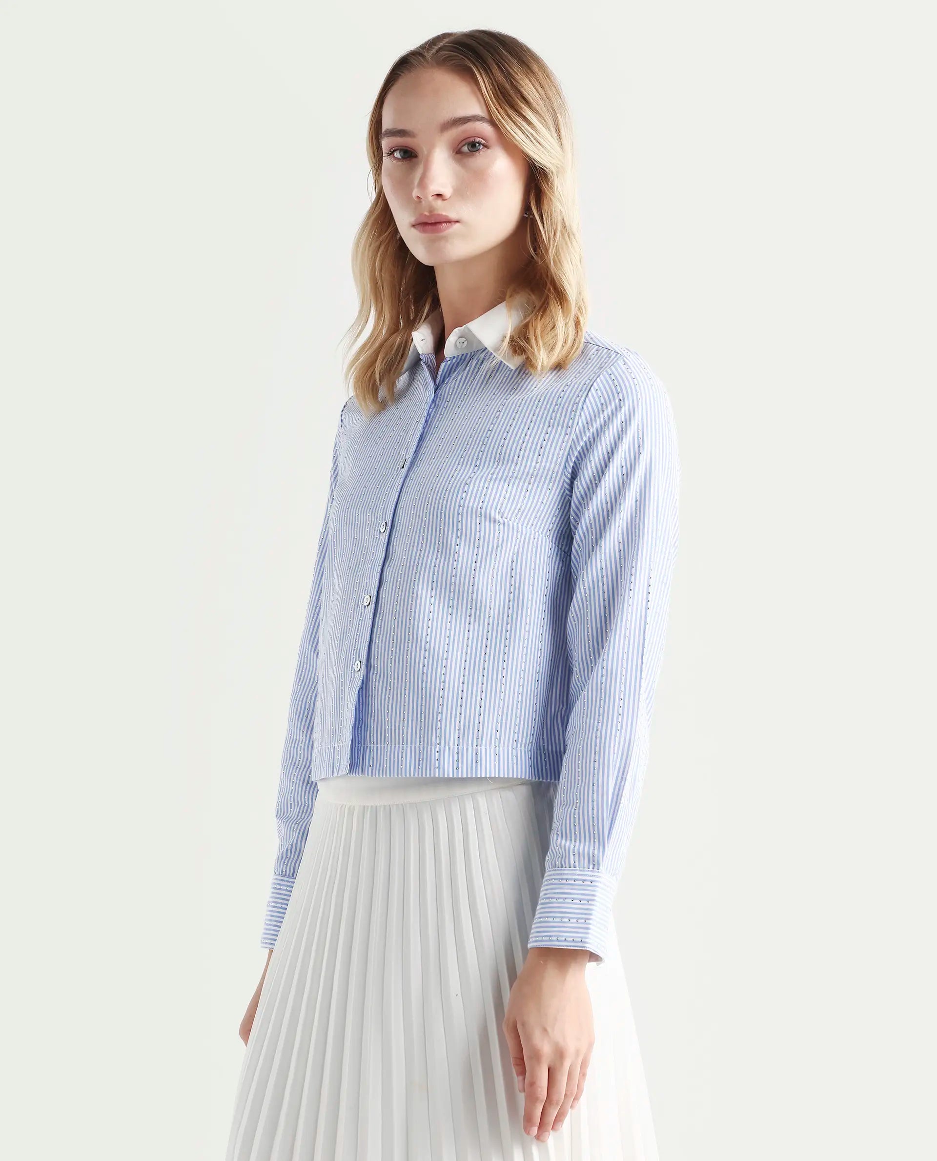 This womens shirt from RAREISM carries a contemporary and minimal charm. Its neat styling keeps the outfit looking fresh and composed. A reliable pick for someone who prefers a soft, modern aesthetic.