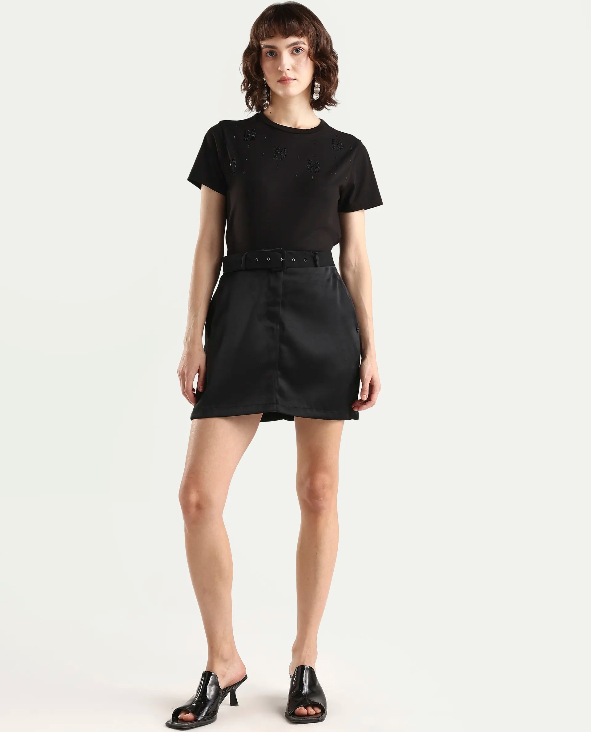 Elevate your everyday wardrobe with the Rareism Zoxi T-Shirt, a sophisticated blend of comfort and contemporary style. Crafted from a premium cotton blend, this half-sleeve tee delivers breathability and durability for all-day wear. The regular fit silhouette flatters effortlessly, while the striking typography print adds an artistic edge to your casual looks. Perfect for layering or wearing solo, this versatile black essential transitions seamlessly from weekend outings to relaxed office settings. A timeless piece that combines quality construction with modern design sensibility.