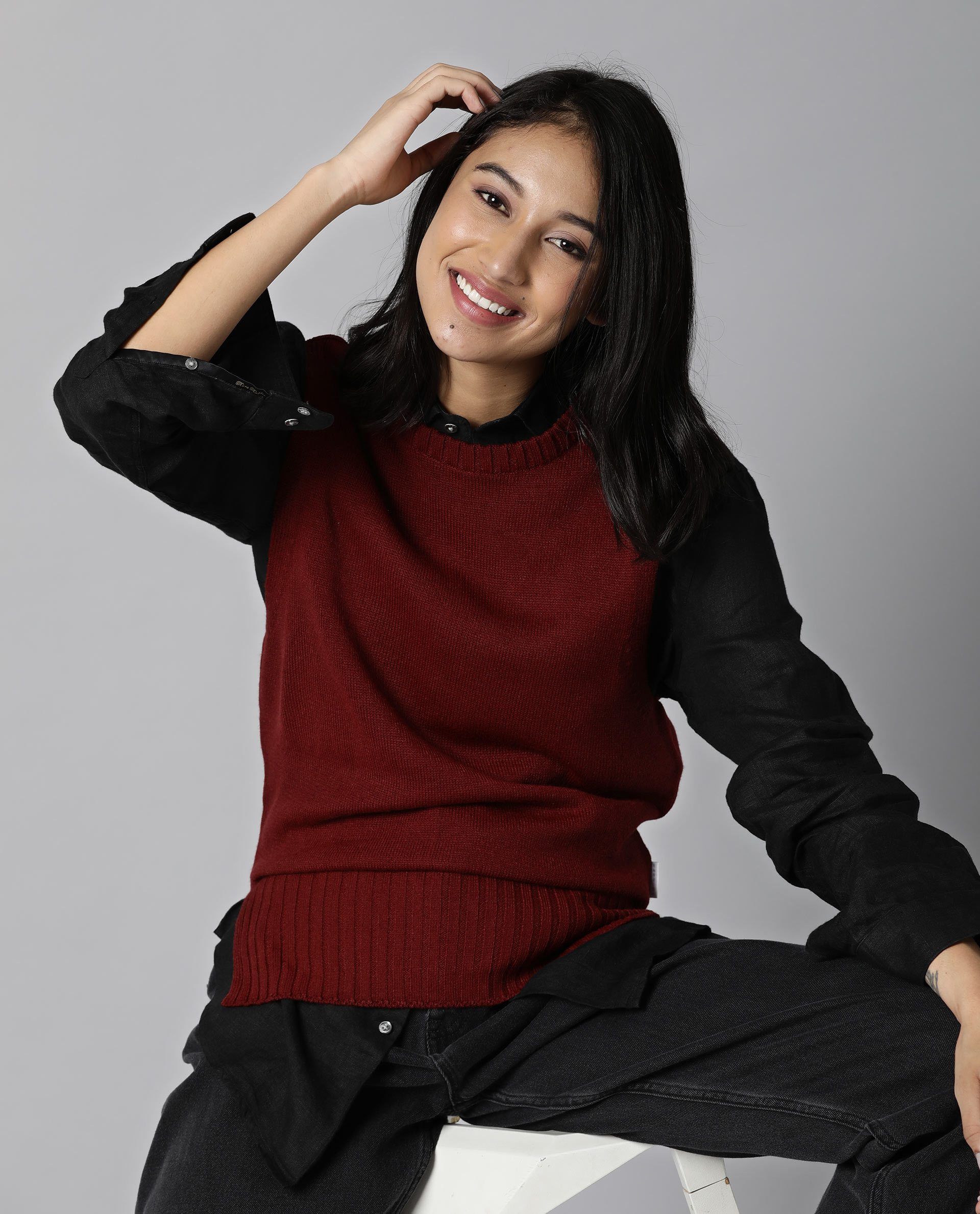 SLIM FIT SIDE SLIT ROUND NECK SWEATER