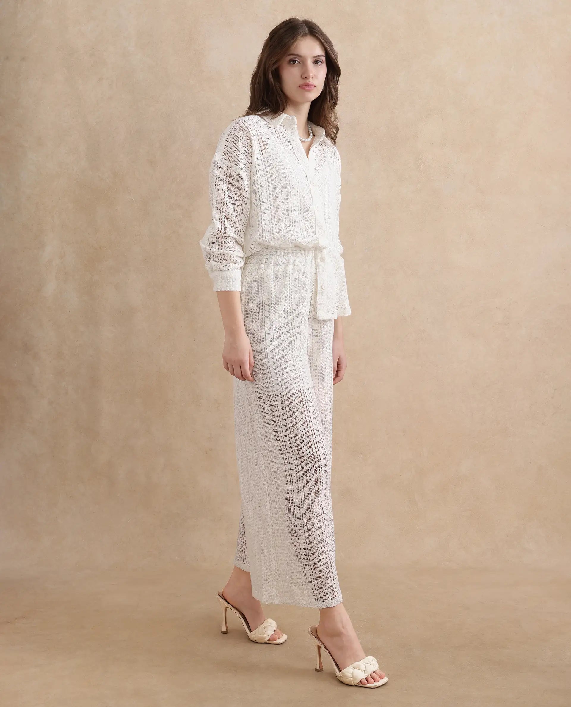 This womens shirt from RAREISM carries a contemporary and minimal charm. Its neat styling keeps the outfit looking fresh and composed. A reliable pick for someone who prefers a soft, modern aesthetic.