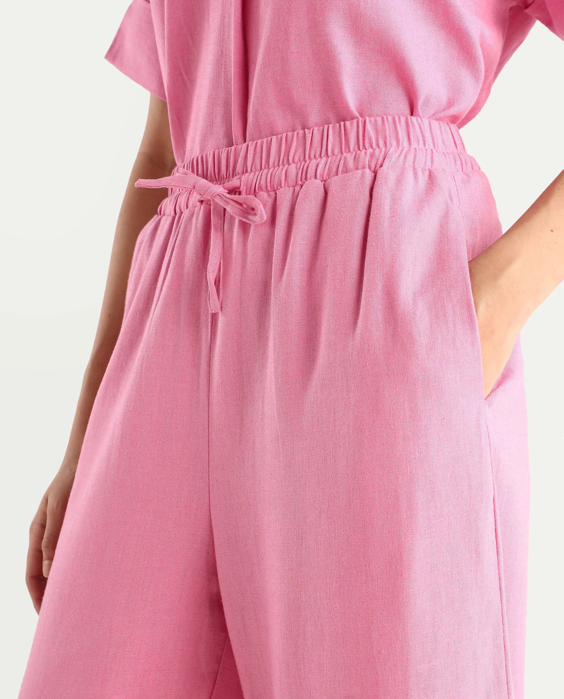 Rareism Women's Somkar B Pink Viscose Blend Plain Ankle Length Straight Fit Trouser