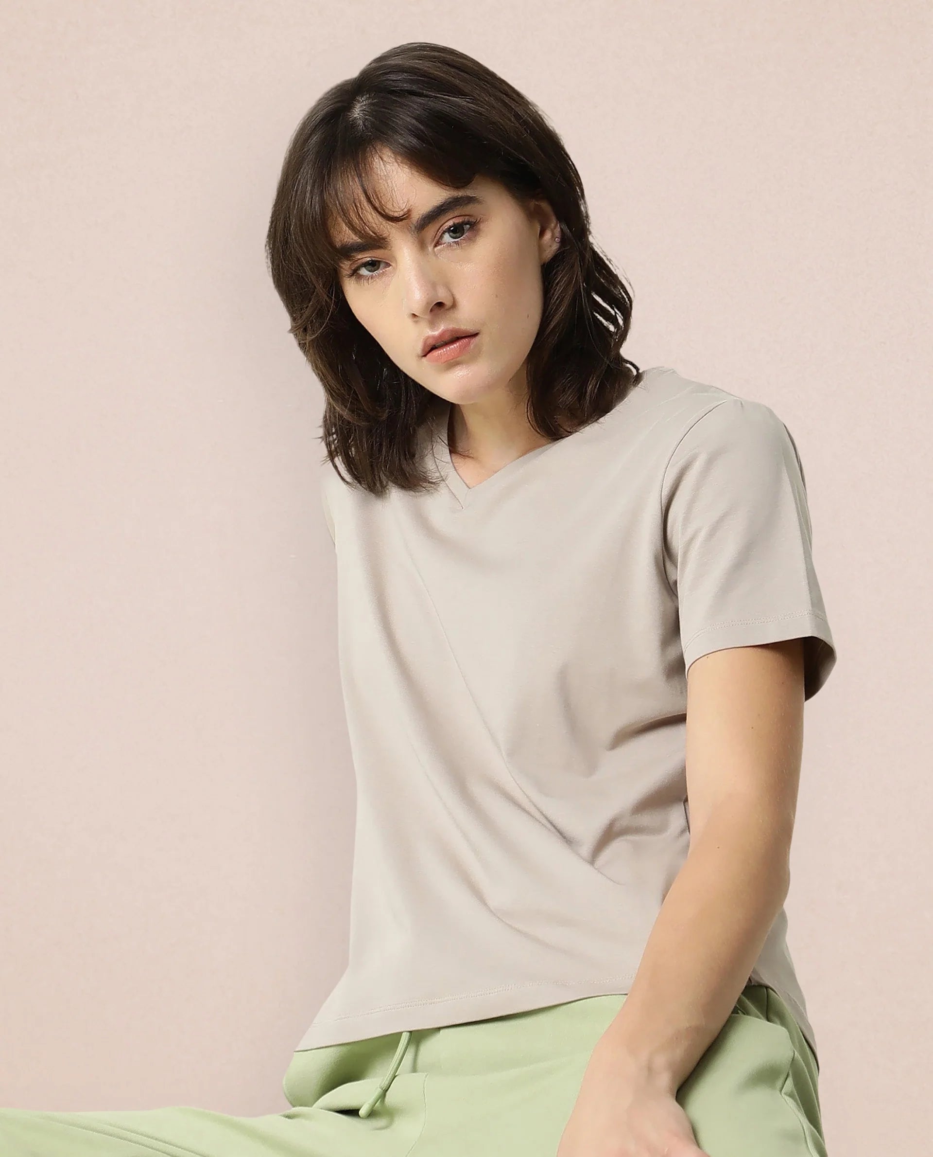This womens t-shirt from RAREISM carries a contemporary and minimal charm. Its neat styling keeps the outfit looking fresh and composed. A reliable pick for someone who prefers a soft, modern aesthetic.