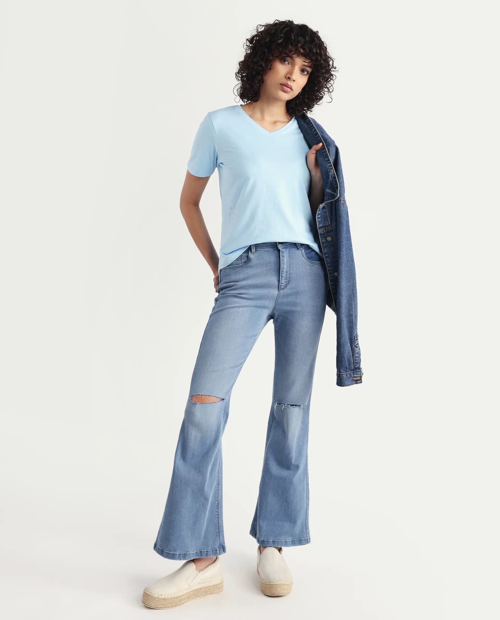 This womens t-shirt from RAREISM carries a contemporary and minimal charm. Its neat styling keeps the outfit looking fresh and composed. A reliable pick for someone who prefers a soft, modern aesthetic.