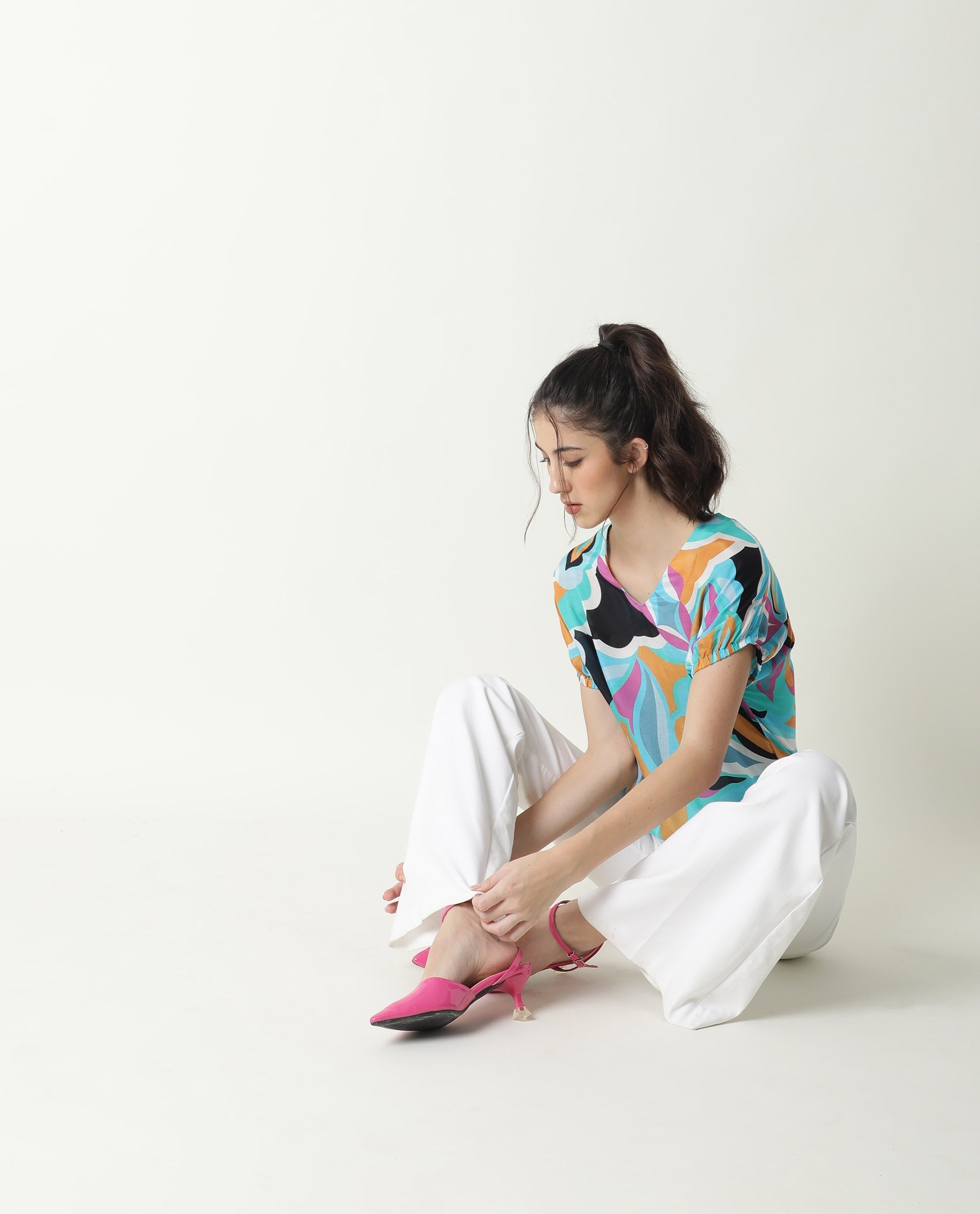 ABSTRACT PRINT REGULAR SLEEVE TOP