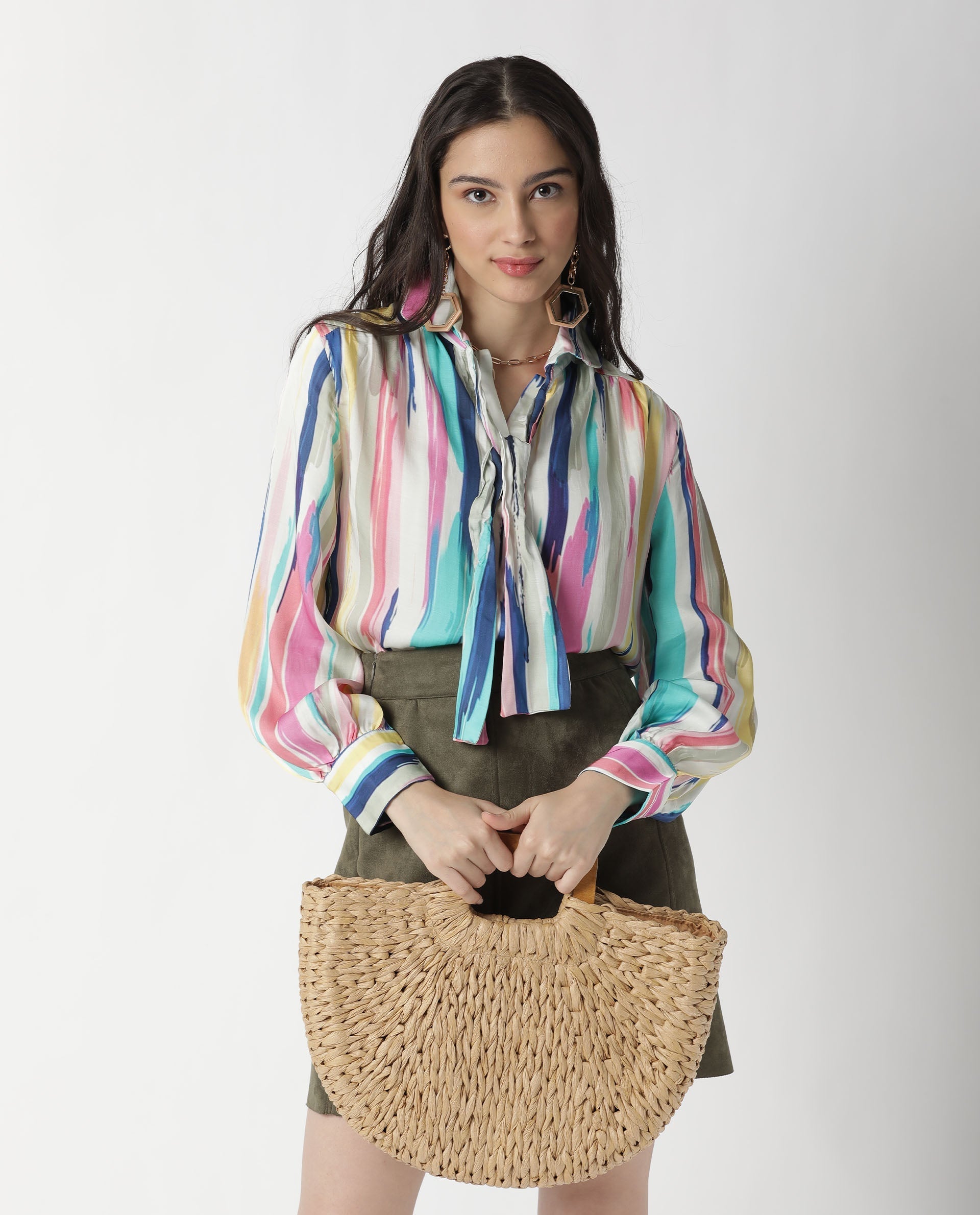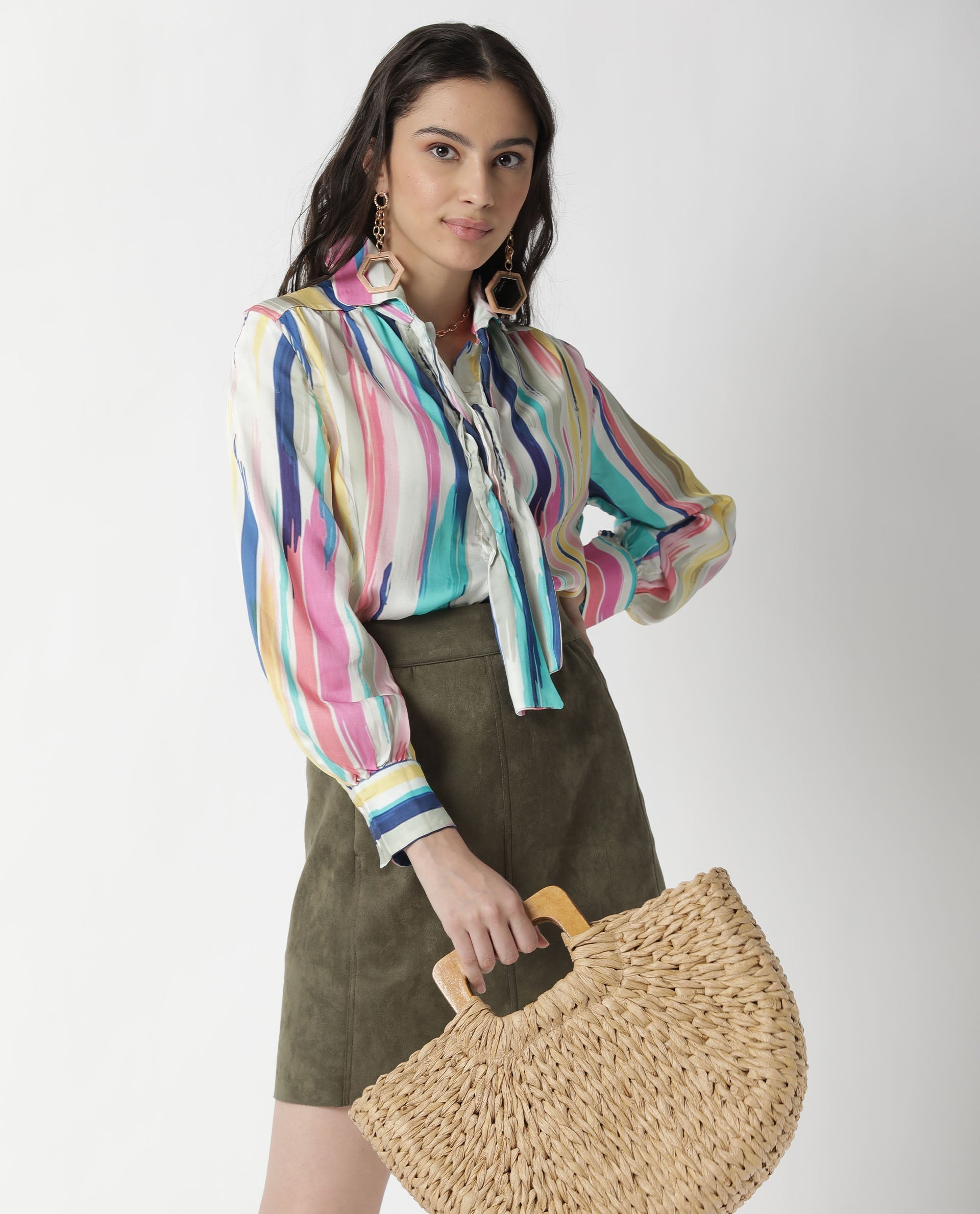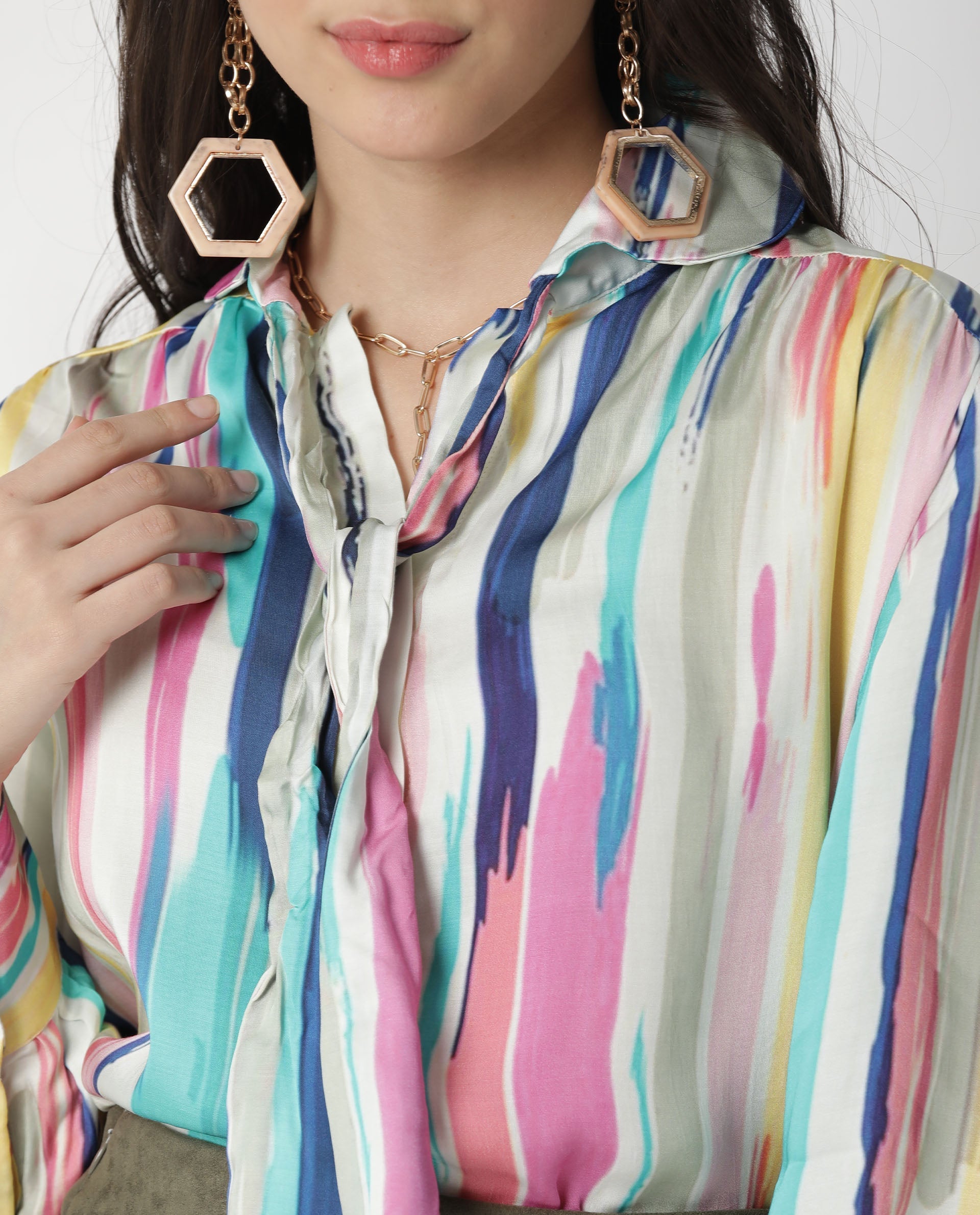 ABSTRACT STRIPE RELAXED FIT SATIN TOP
