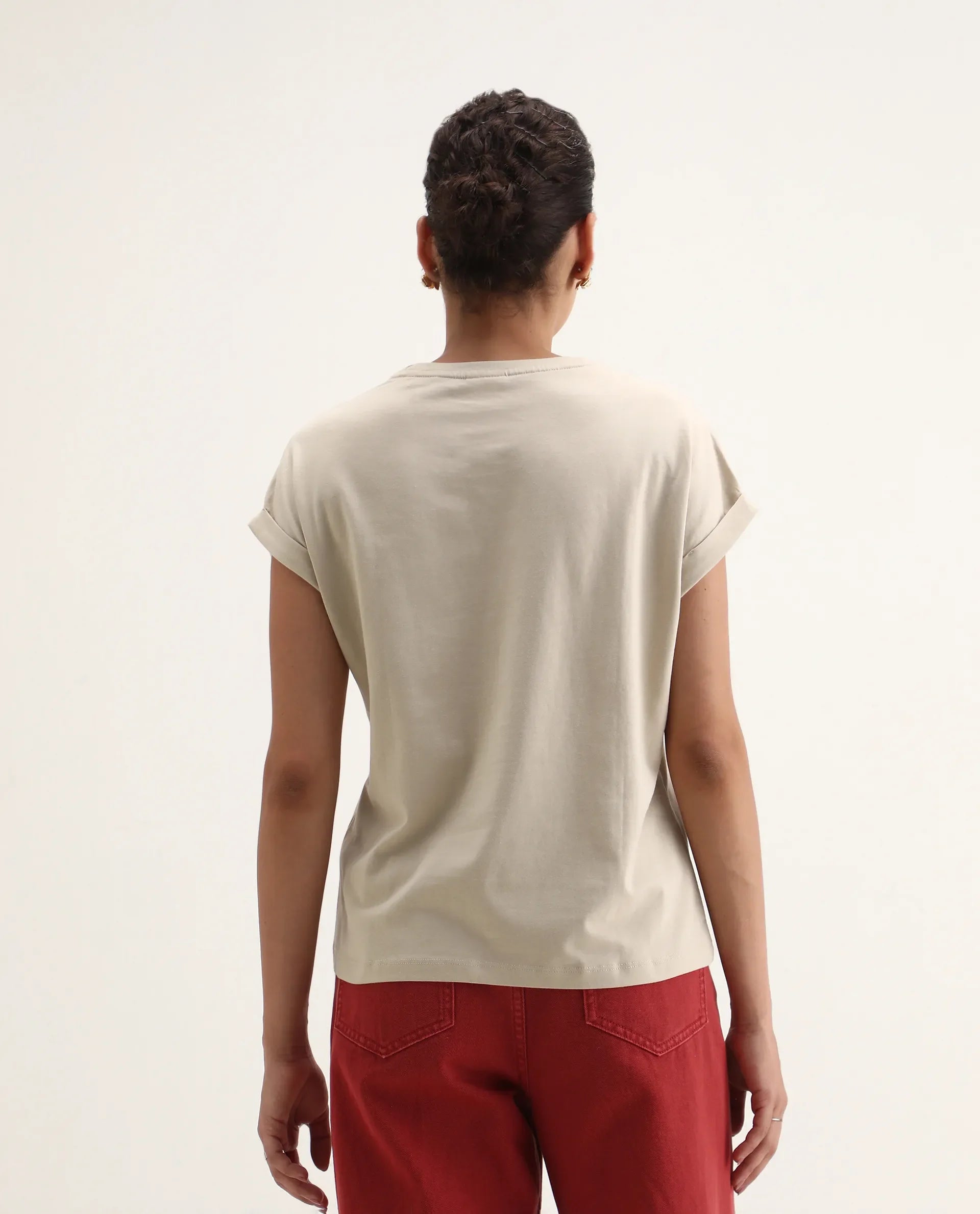 This womens t-shirt from RAREISM carries a contemporary and minimal charm. Its neat styling keeps the outfit looking fresh and composed. A reliable pick for someone who prefers a soft, modern aesthetic.
