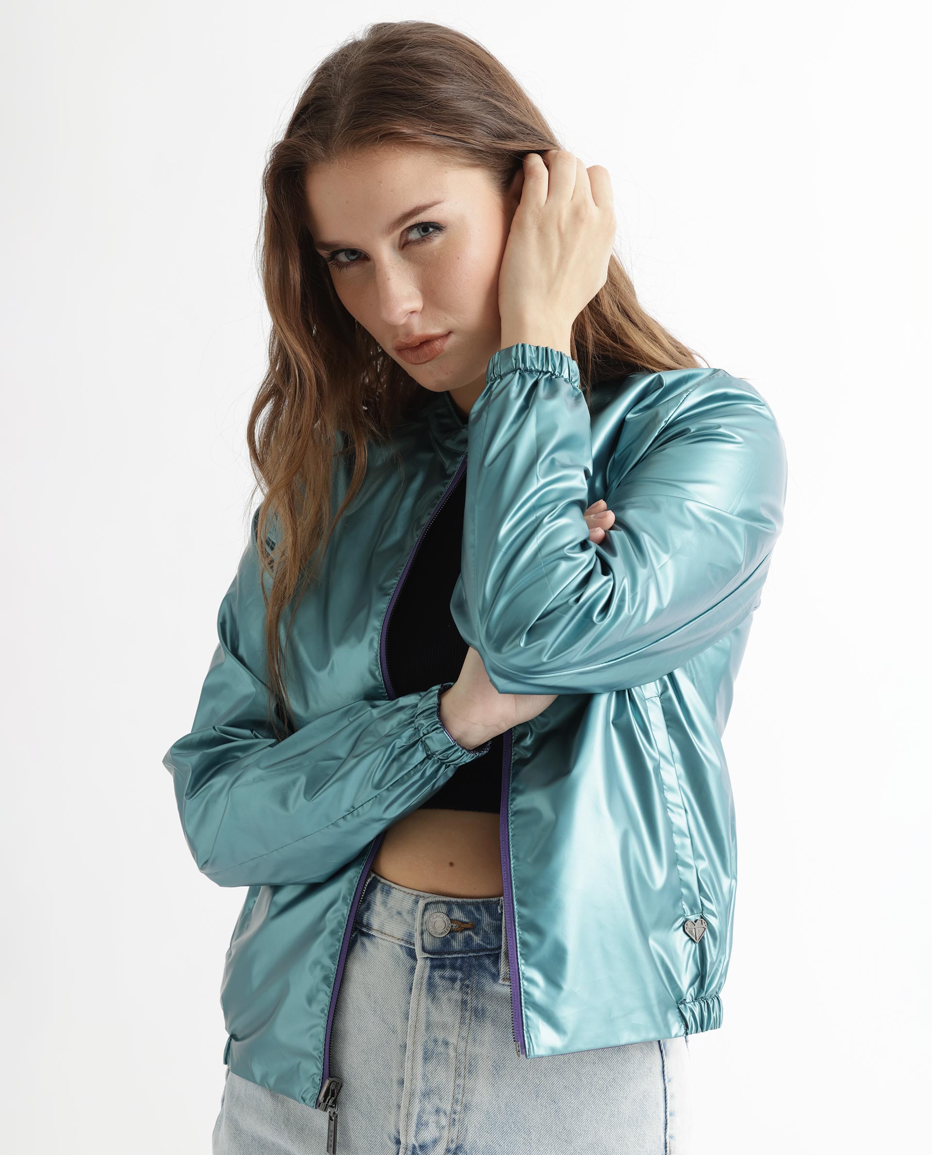 -A chic reversible metallic jacket with mandarin collar.
