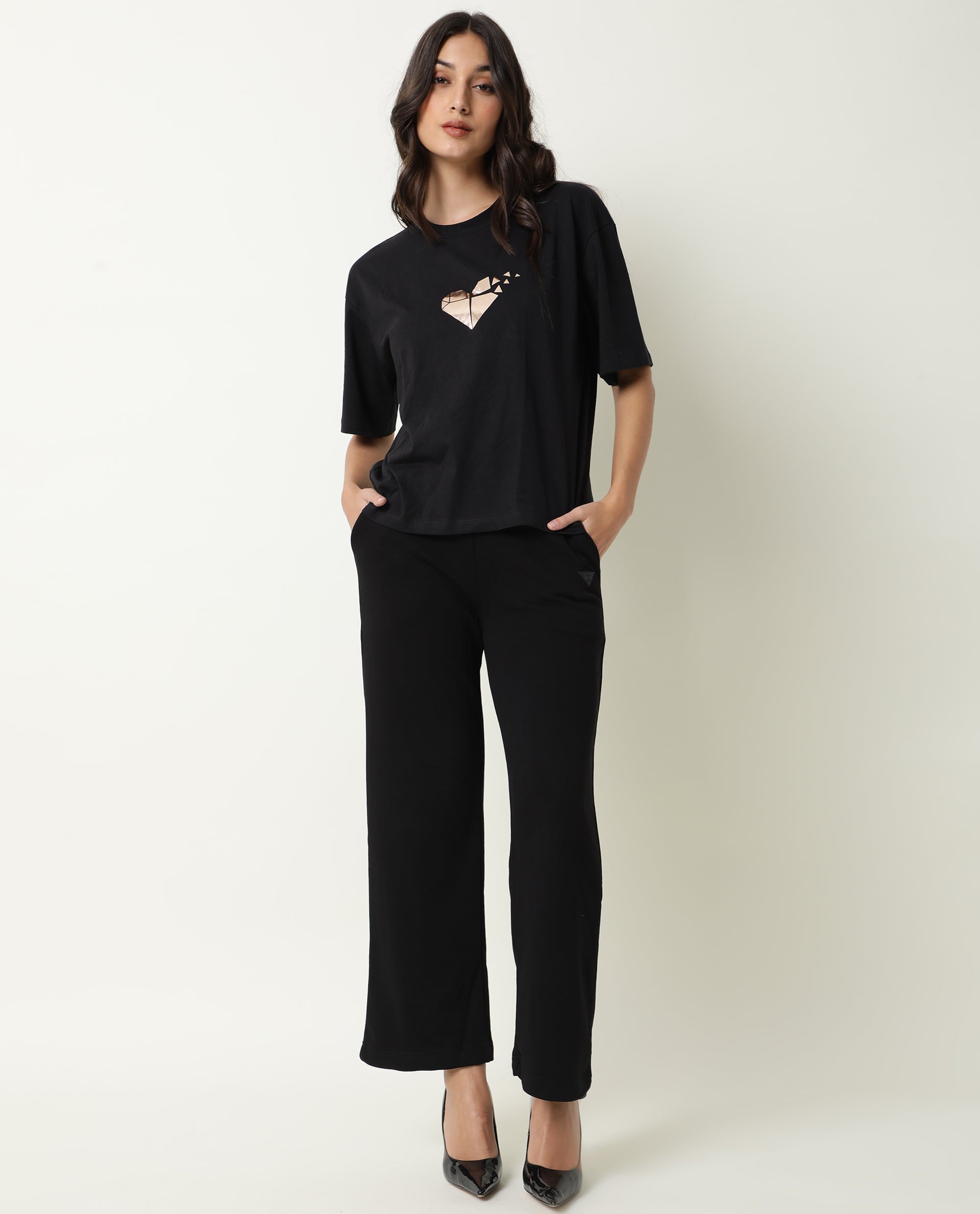 - A relaxed fit flared jogger with side pockets and elasticated at waist and hemline.