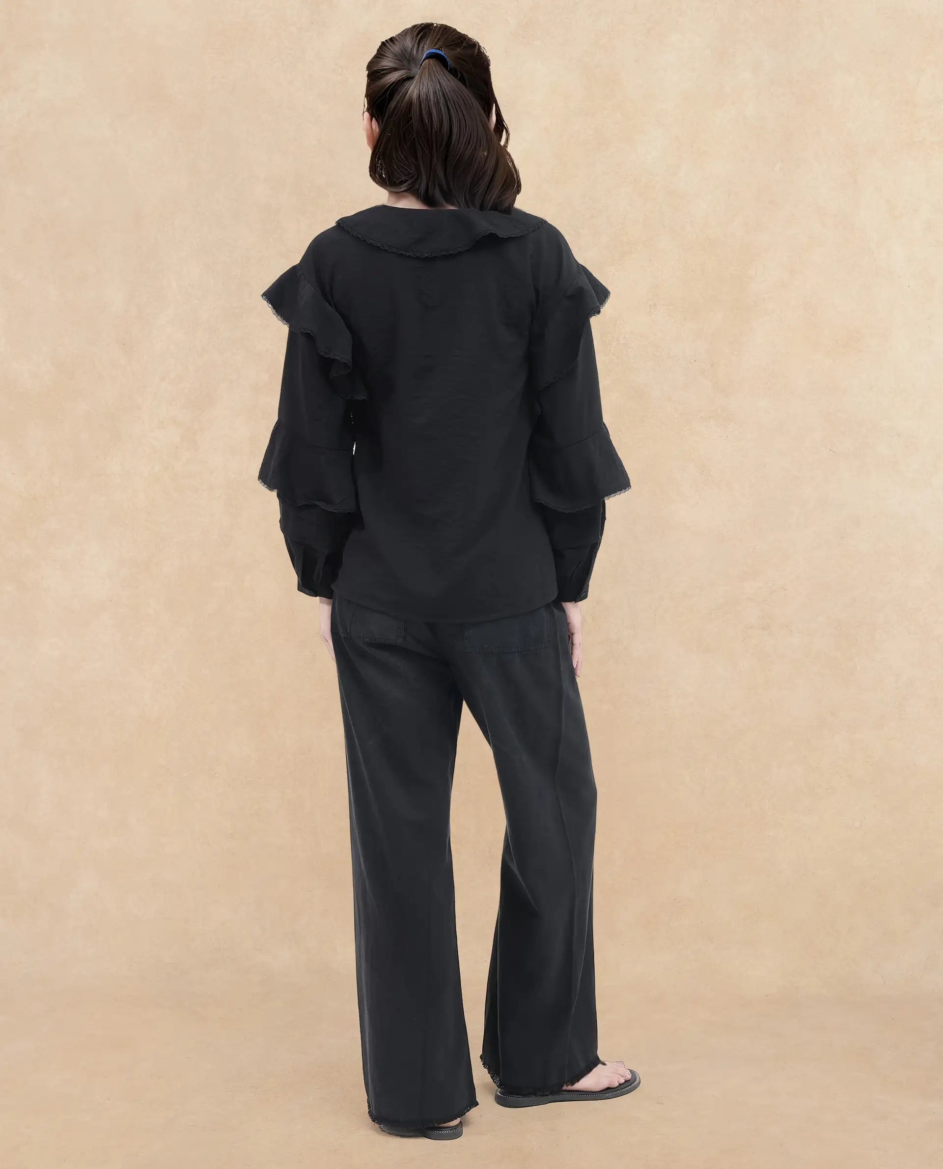KEI-T - BLACK PLAIN BISHOP SLEEVE TOP