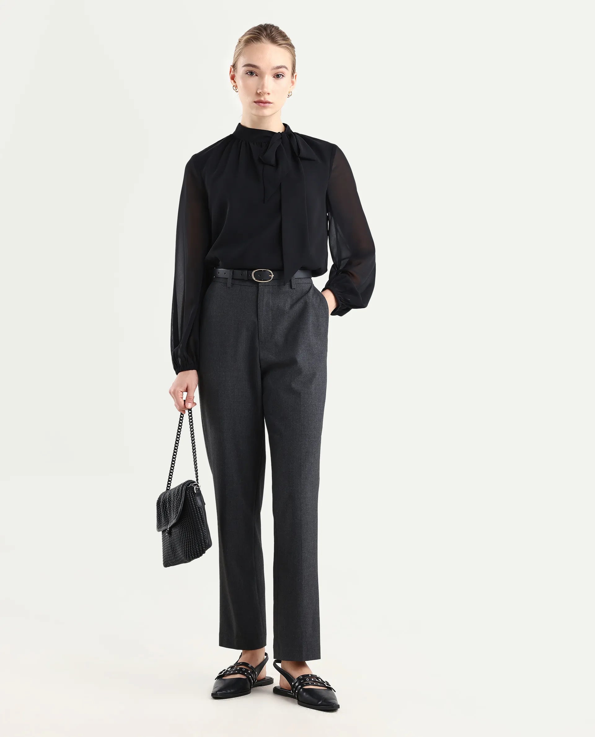 Rareism Women's Taper Grey Polyester Blend Tapered Plain Travel Trouser